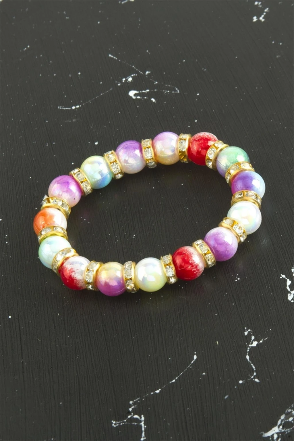 Bileklik; Ürün misina üzerine dizilmiş plastik boncuklardan üretilmişdir.