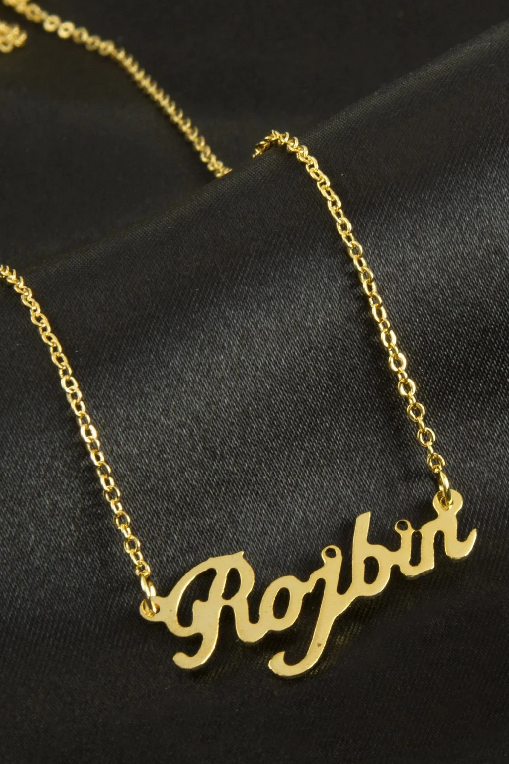 Rojbin İsimli Kolye. İsimli kolye pirinç madeninden ve altın kaplamalıdır. Kişiye özel üretilmektedir.Yazdırmak istediğiniz ismi bize mesaj olarak iletmeniz gerekmektedir. Kullanıma bağlı olarak uzun süre kullanıma uygundur. Ürün malzemesi 1.sınıf kalitededir. Ürün ve zinciri sarı renktedir. Ürün zincir boyu 45 cm ve ürün üzerindeki isimler yaklaşık 3 cmdir. İsim boyları ürün ismine göre degişiklik göstermektedir.