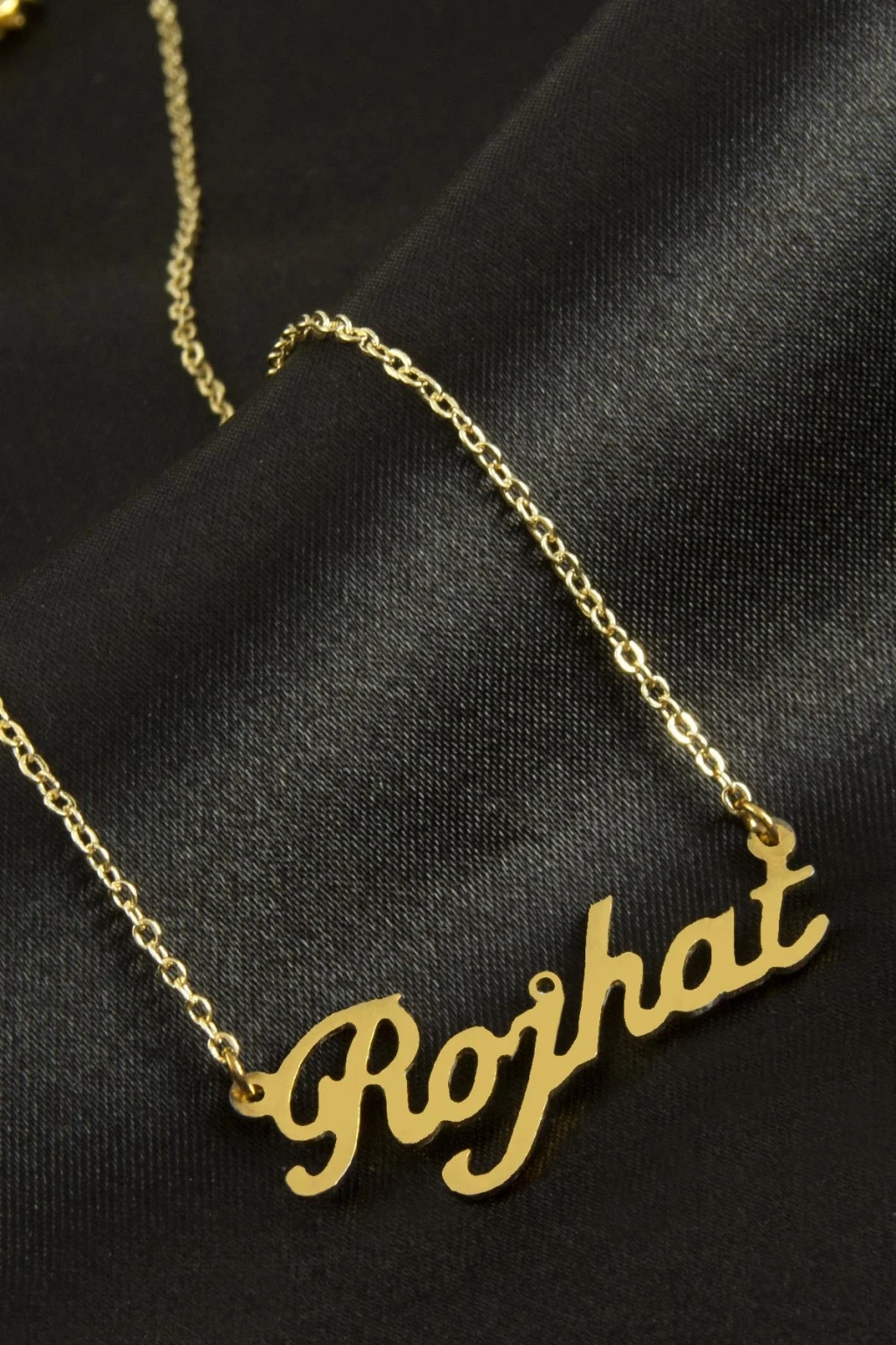 Rojhat İsimli Kolye. İsimli kolye pirinç madeninden ve altın kaplamalıdır. Kişiye özel üretilmektedir.Yazdırmak istediğiniz ismi bize mesaj olarak iletmeniz gerekmektedir. Kullanıma bağlı olarak uzun süre kullanıma uygundur. Ürün malzemesi 1.sınıf kalitededir. Ürün ve zinciri sarı renktedir. Ürün zincir boyu 45 cm ve ürün üzerindeki isimler yaklaşık 3 cmdir. İsim boyları ürün ismine göre degişiklik göstermektedir.