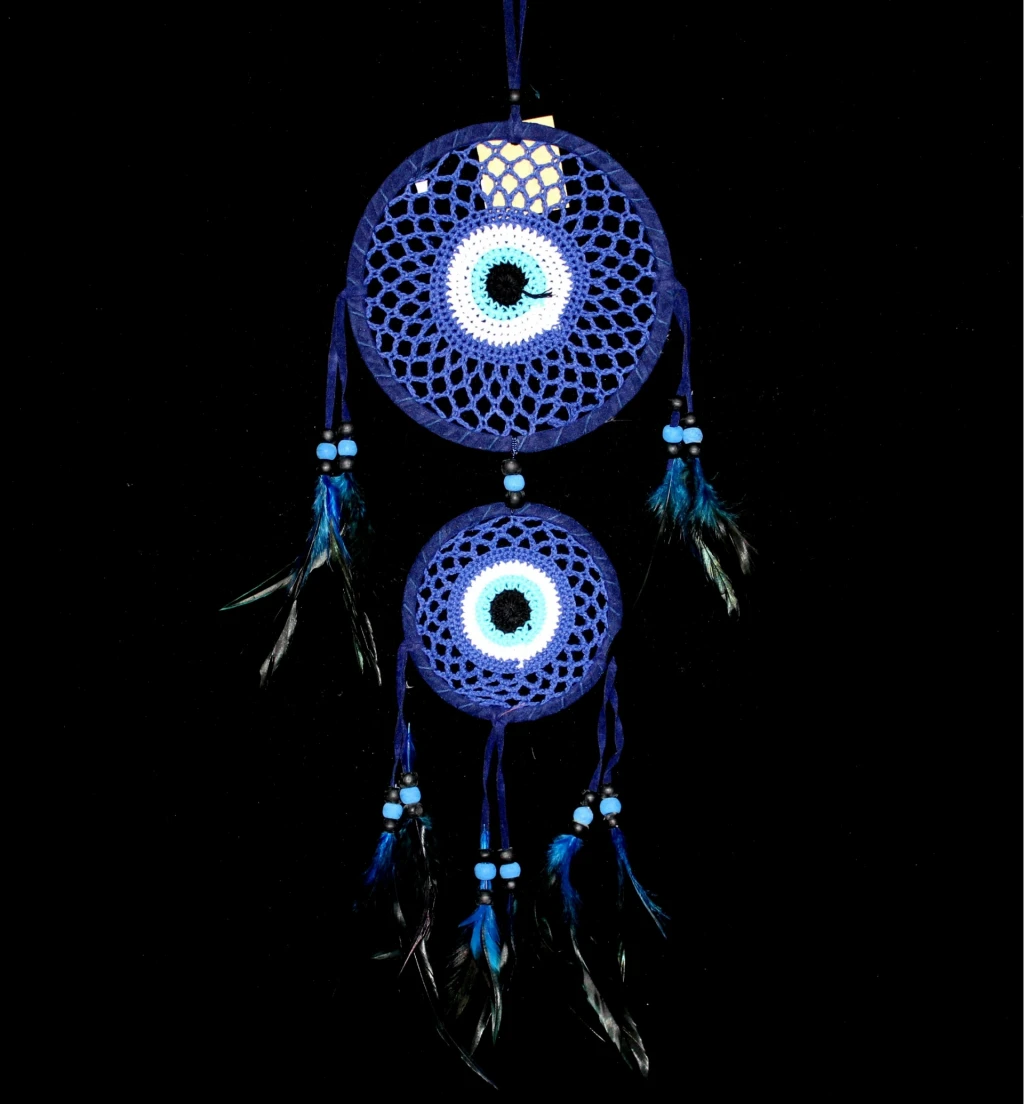 RÜYA KAPANI DREAMCATCHER MODEL 25Ürün ÖzellikleriEvinize mistik bir dokunuş katmak ve negatif enerjiyi uzaklaştırmak için özel olarak tasarlanmış bu rüya kapanı, dekoratif yapısıyla dikkat çeker. Nazar boncuğu detaylarıyla bezenmiş tasarımı, geleneksel ve modern unsurları bir araya getirerek şık bir görünüm sunar. El yapımı örgü detayları ve tüy süslemeleriyle tamamlanan bu ürün, yatak odanızda veya yaşam alanlarınızda huzurlu bir atmosfer yaratmanıza yardımcı olur.Paket İçeriği:1 adet Rüya Kapanı Dreamcatcher Model 25