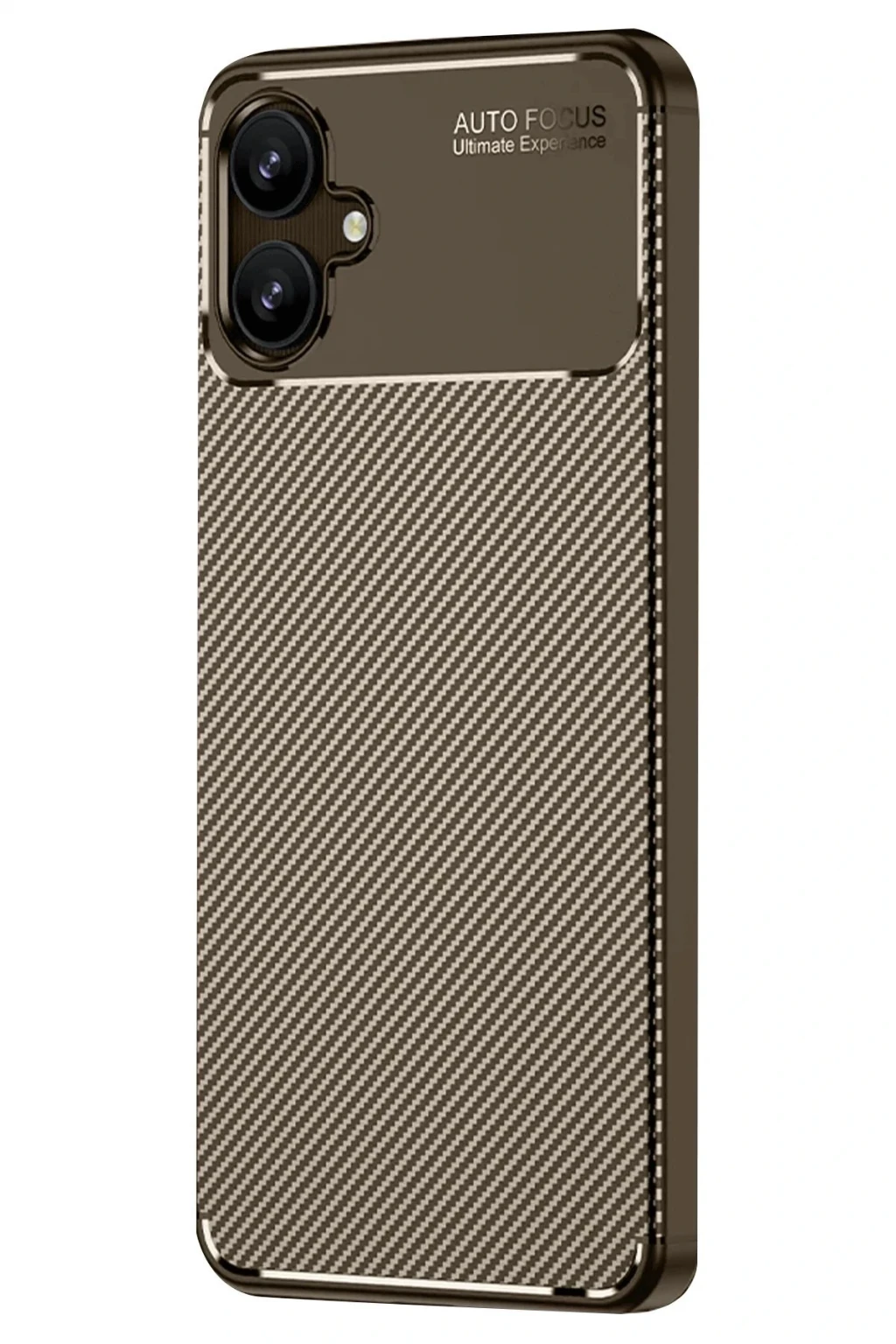 Samsung Galaxy A06 Kılıf Auto Focus Karbon Kapak - Kahverengi