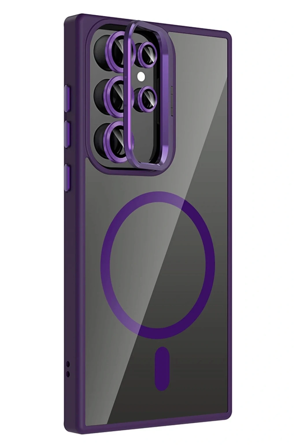 Samsung Galaxy S23 Ultra Remim Lensli Magsafe Standlı Kapak - Derin Mor
