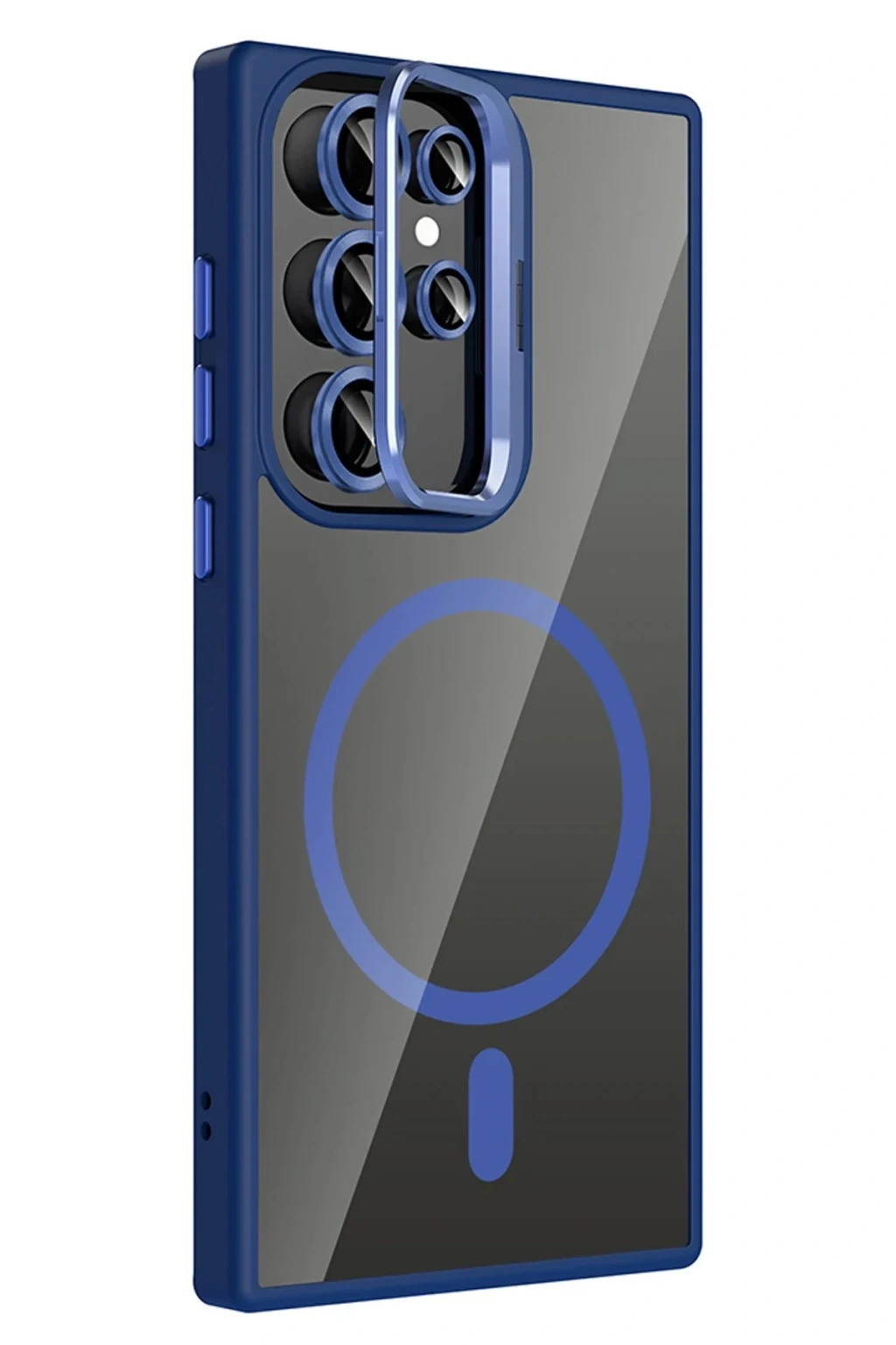 Samsung Galaxy S23 Ultra Remim Lensli Magsafe Standlı Kapak - Lacivert