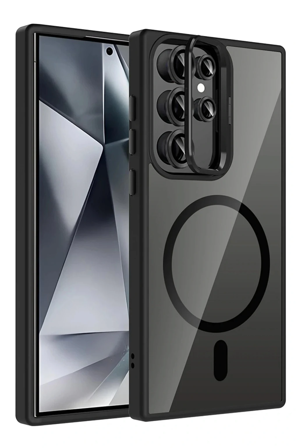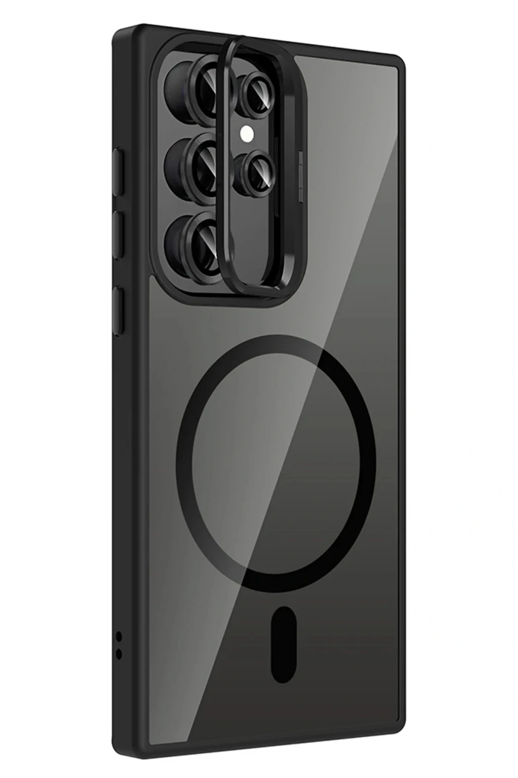 Samsung Galaxy S23 Ultra Remim Lensli Magsafe Standlı Kapak - Siyah
