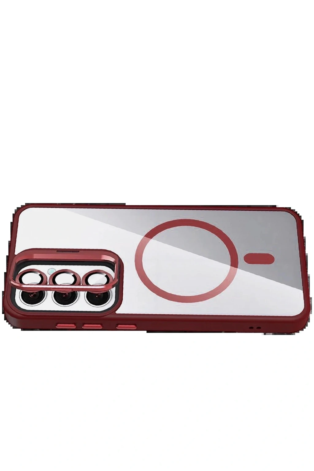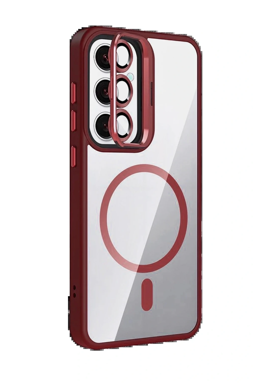 Samsung Galaxy S24 FE Remim Lensli Magsafe Standlı Kapak - Bordo