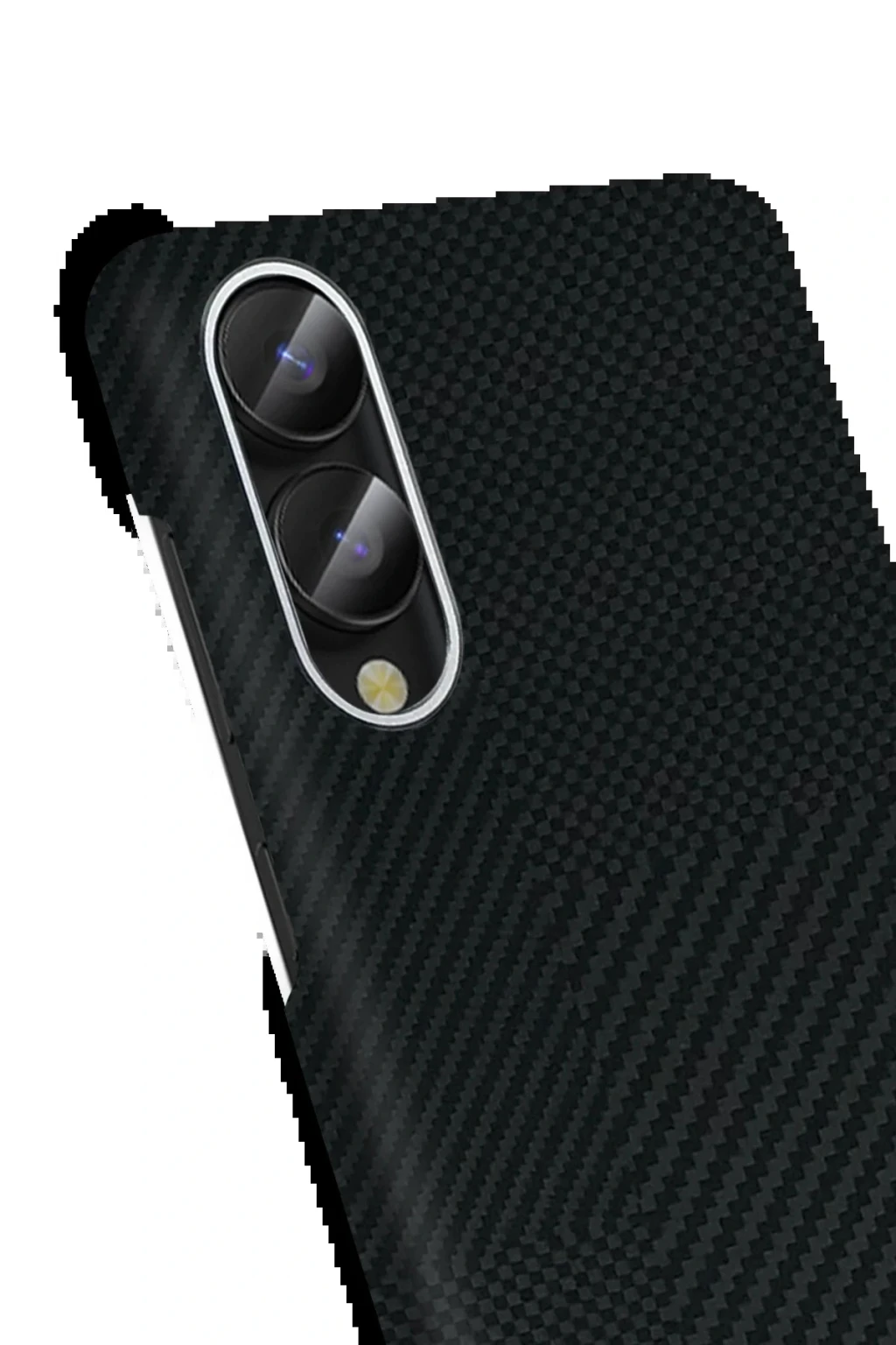 Farklı renk seçenekleriyle sunulan kevlar desenli yüzey, telefonunuza estetik bir görünüm kazandırır.