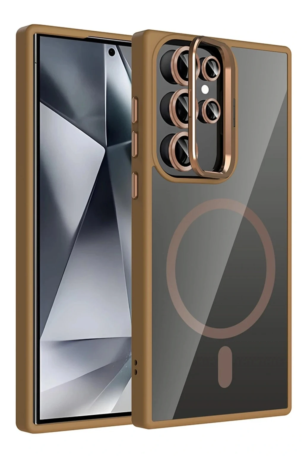 Samsung Galaxy S25 Ultra Remim Lensli Magsafe Standlı Kapak - Kahverengi