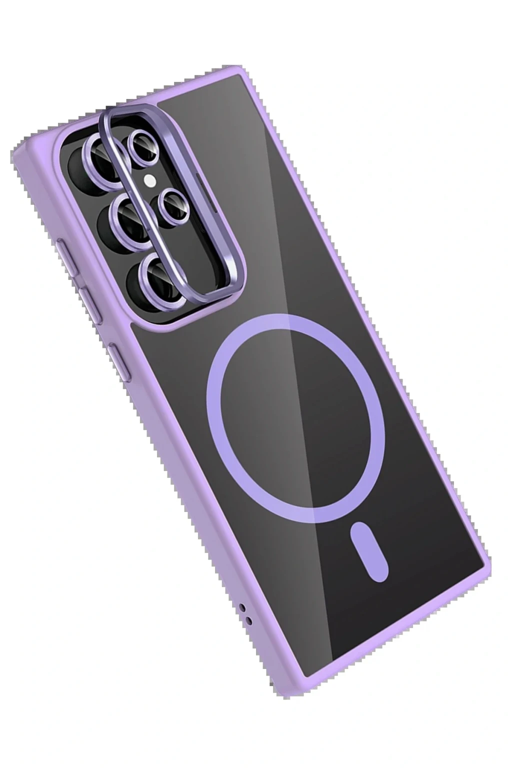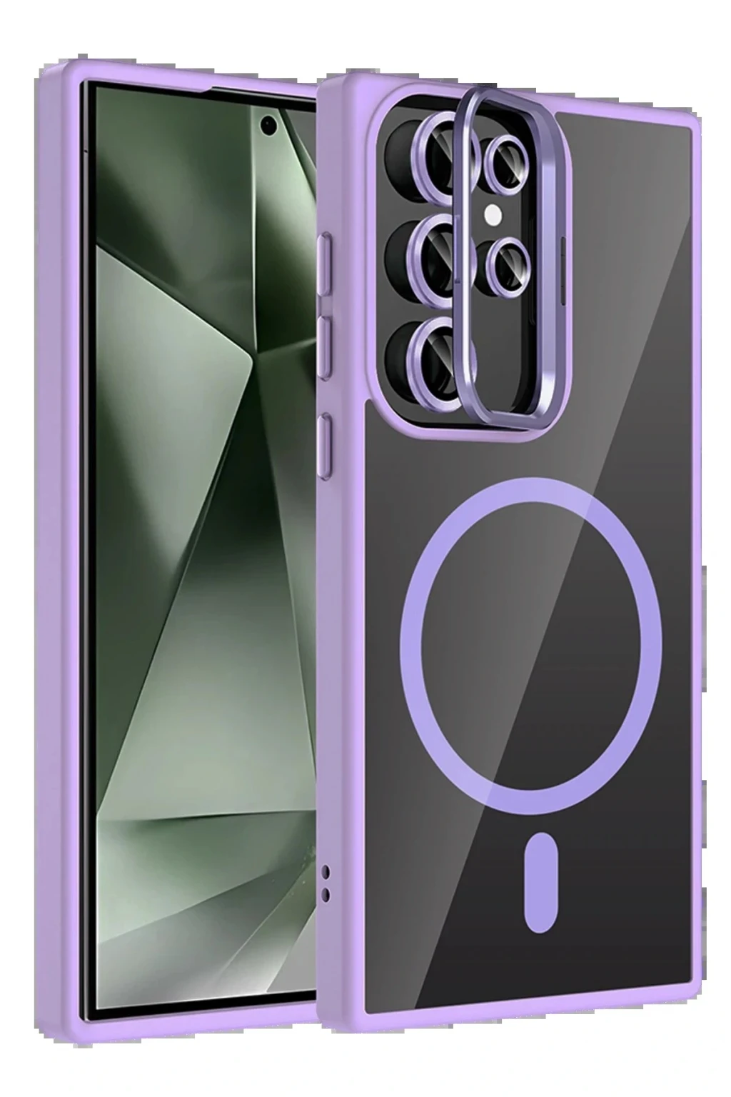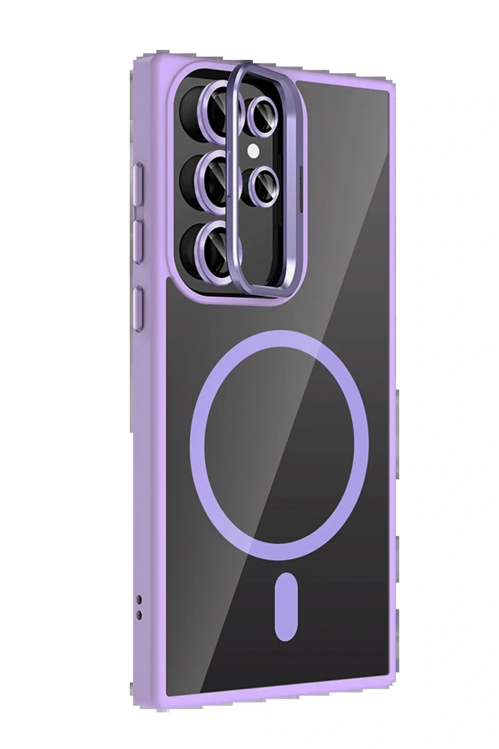 Samsung Galaxy S25 Ultra Remim Lensli Magsafe Standlı Kapak - Lila