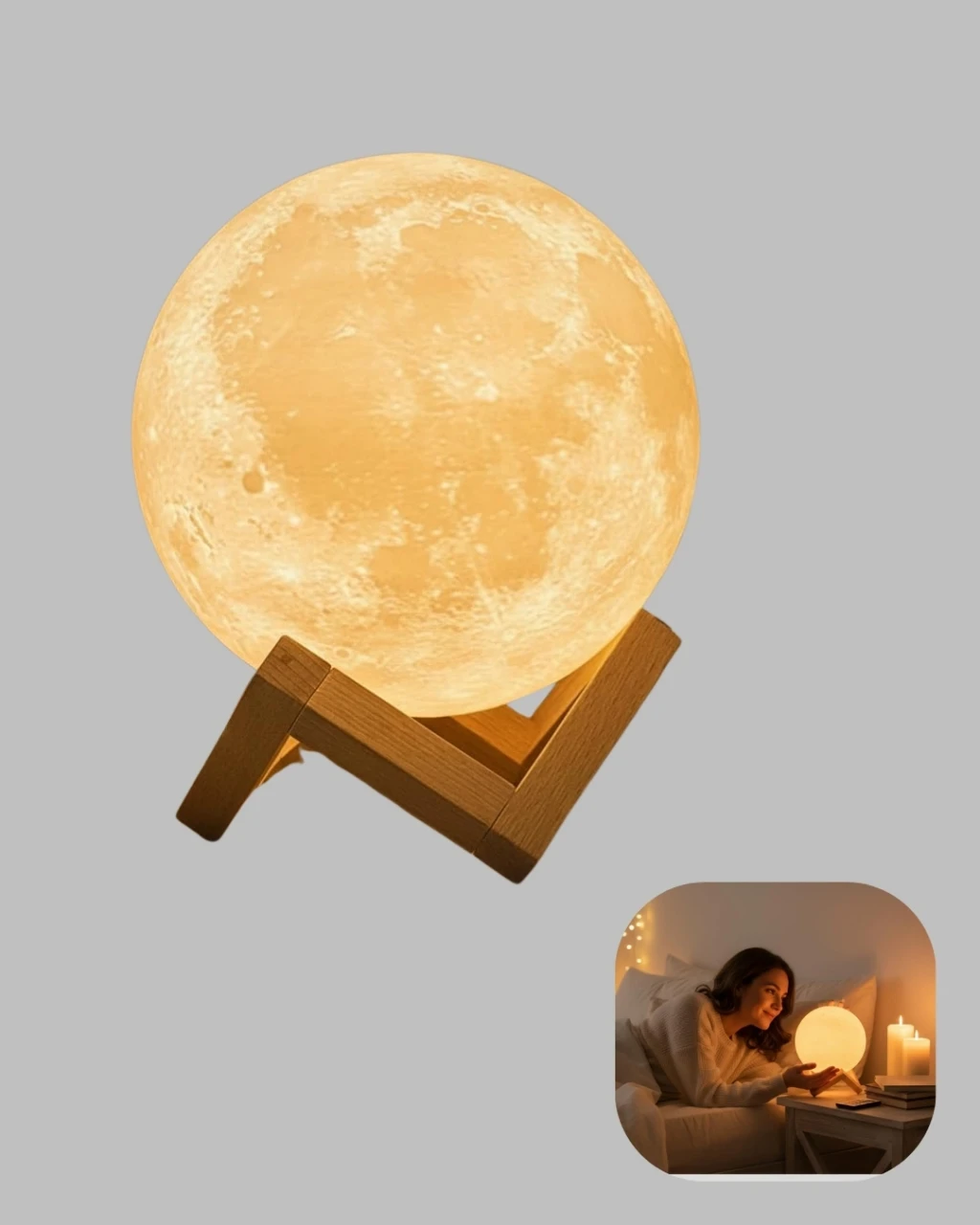 Dekorasyon ve teknolojiyi bir araya getiren bu şarjlı 3D ay lambası, 16 renk seçeneğiyle evinizde büyüleyici bir atmosfer yaratır. Gerçek ay yüzeyinden esinlenilerek 3D baskı teknolojisiyle üretilen yüzeyi, en küçük detayları bile yansıtır.16 farklı renk modu ve 4 özel ışık efekti sayesinde dilediğiniz ruh haline göre ortam aydınlatmasını değiştirebilirsiniz. RGB geçiş modu, renklerin birbirine pürüzsüz geçiş yapmasını sağlar. 9 kademeli parlaklık ayarı sayesinde gece lambası, ambiyans ışığı veya dekoratif aydınlatma olarak kullanılabilir.Ahşap stand, lambayı es bir biçimde sergilerken odanıza doğal bir dokunuş katar. 500mAh şarjlı pil, 8 saat kullanım süresi sağlar. Hafif ve taşınabilir yapısı ile istediğiniz her odaya kolayca yerleştirebilirsiniz.Ev dekorasyonuna sıcaklık katmak isteyenler için ideal bir seçim!