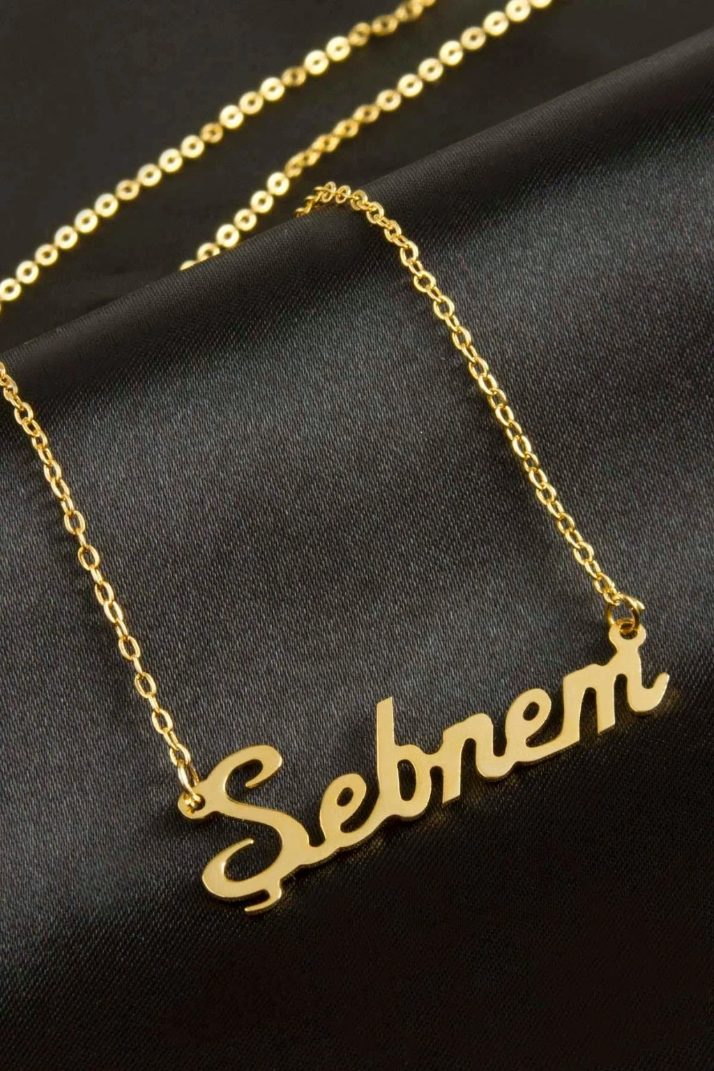Şebnem isimli kolye. İsimli kolye pirinç madeninden ve altın kaplamalıdır. Kişiye özel üretilmektedir.Yazdırmak istediğiniz ismi bize mesaj olarak iletmeniz gerekmektedir. Kullanıma bağlı olarak uzun süre kullanıma uygundur. Ürün malzemesi 1.sınıf kalitededir. Ürün ve zinciri sarı renktedir. Ürün zincir boyu 45 cm ve ürün üzerindeki isimler yaklaşık 3 cmdir. İsim boyları ürün ismine göre degişiklik göstermektedir.