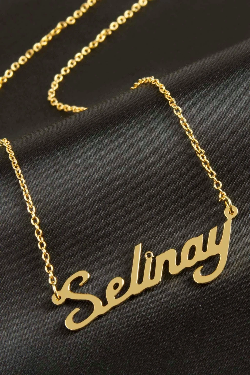 Selinay isimli kolye. İsimli kolye pirinç madeninden ve altın kaplamalıdır. Kişiye özel üretilmektedir.Yazdırmak istediğiniz ismi bize mesaj olarak iletmeniz gerekmektedir. Kullanıma bağlı olarak uzun süre kullanıma uygundur. Ürün malzemesi 1.sınıf kalitededir. Ürün ve zinciri sarı renktedir. Ürün zincir boyu 45 cm ve ürün üzerindeki isimler yaklaşık 3 cmdir. İsim boyları ürün ismine göre degişiklik göstermektedir.