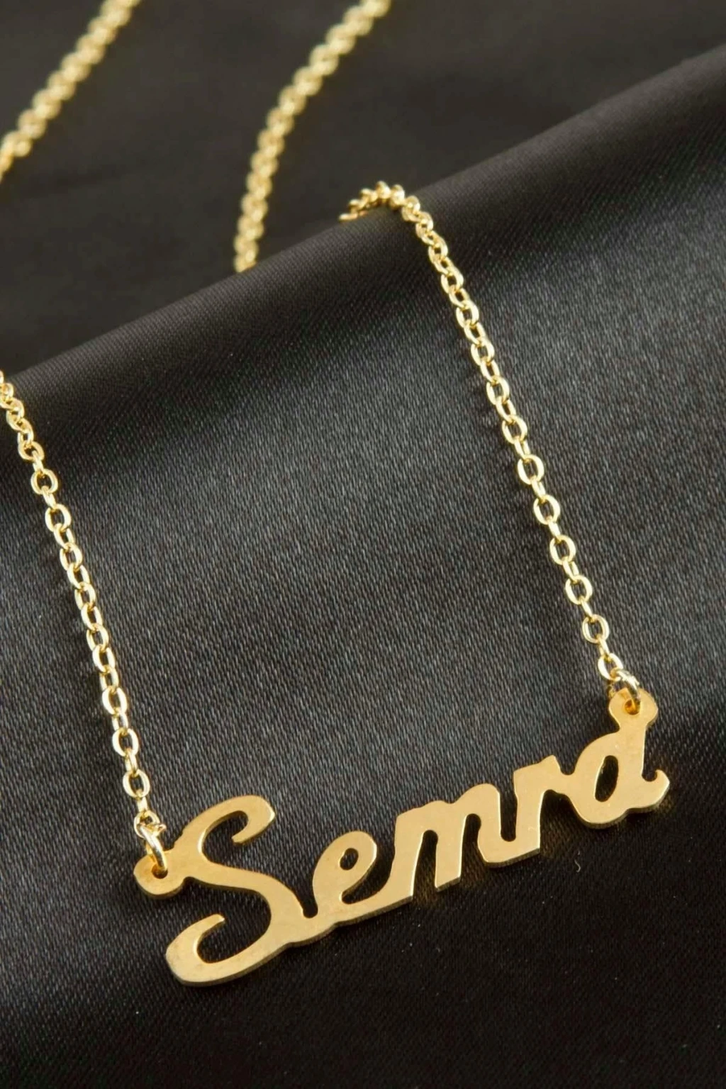 Semra isimli kolye. İsimli kolye pirinç madeninden ve altın kaplamalıdır. Kişiye özel üretilmektedir.Yazdırmak istediğiniz ismi bize mesaj olarak iletmeniz gerekmektedir. Kullanıma bağlı olarak uzun süre kullanıma uygundur. Ürün malzemesi 1.sınıf kalitededir. Ürün ve zinciri sarı renktedir. Ürün zincir boyu 45 cm ve ürün üzerindeki isimler yaklaşık 3 cmdir. İsim boyları ürün ismine göre degişiklik göstermektedir.