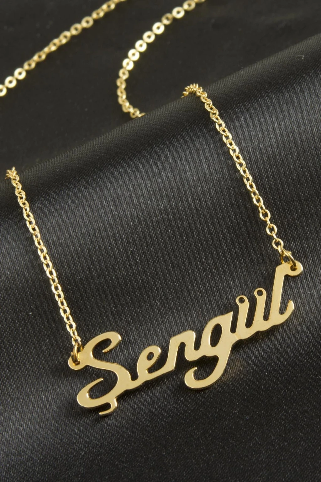 Şengül İsimli Kolye. İsimli kolye pirinç madeninden ve altın kaplamalıdır. Kişiye özel üretilmektedir.Yazdırmak istediğiniz ismi bize mesaj olarak iletmeniz gerekmektedir. Kullanıma bağlı olarak uzun süre kullanıma uygundur. Ürün malzemesi 1.sınıf kalitededir. Ürün ve zinciri sarı renktedir. Ürün zincir boyu 45 cm ve ürün üzerindeki isimler yaklaşık 3 cmdir. İsim boyları ürün ismine göre degişiklik göstermektedir.