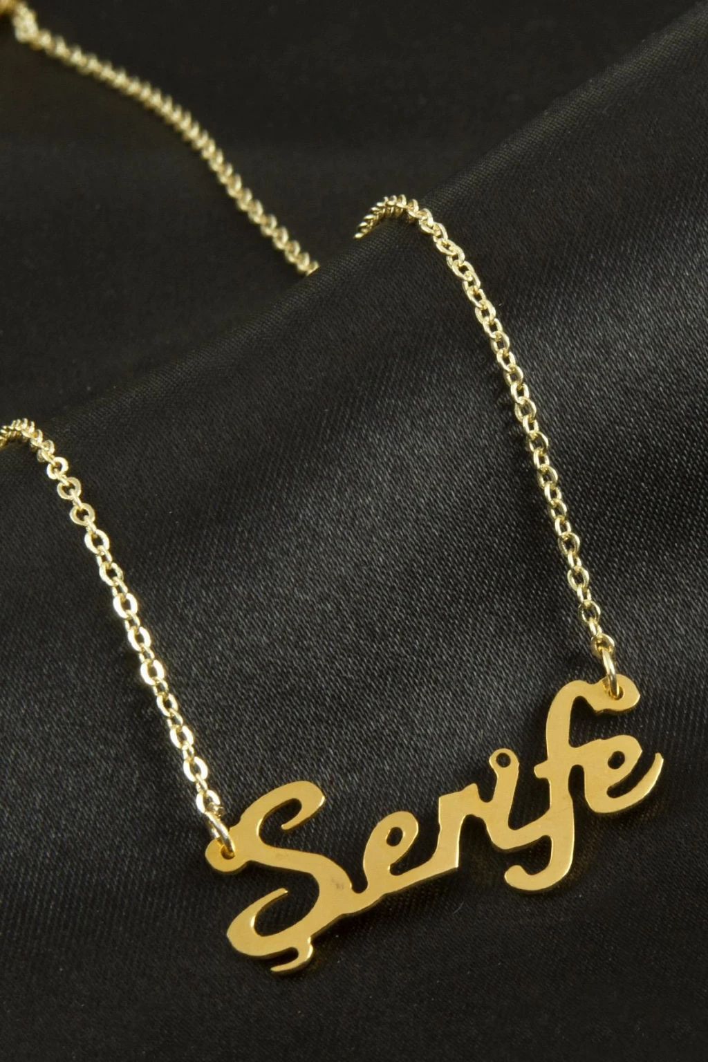 Şerife isimli kolye. İsimli kolye pirinç madeninden ve altın kaplamalıdır. Kişiye özel üretilmektedir.Yazdırmak istediğiniz ismi bize mesaj olarak iletmeniz gerekmektedir. Kullanıma bağlı olarak uzun süre kullanıma uygundur. Ürün malzemesi 1.sınıf kalitededir. Ürün ve zinciri sarı renktedir. Ürün zincir boyu 45 cm ve ürün üzerindeki isimler yaklaşık 3 cmdir. İsim boyları ürün ismine göre degişiklik göstermektedir.