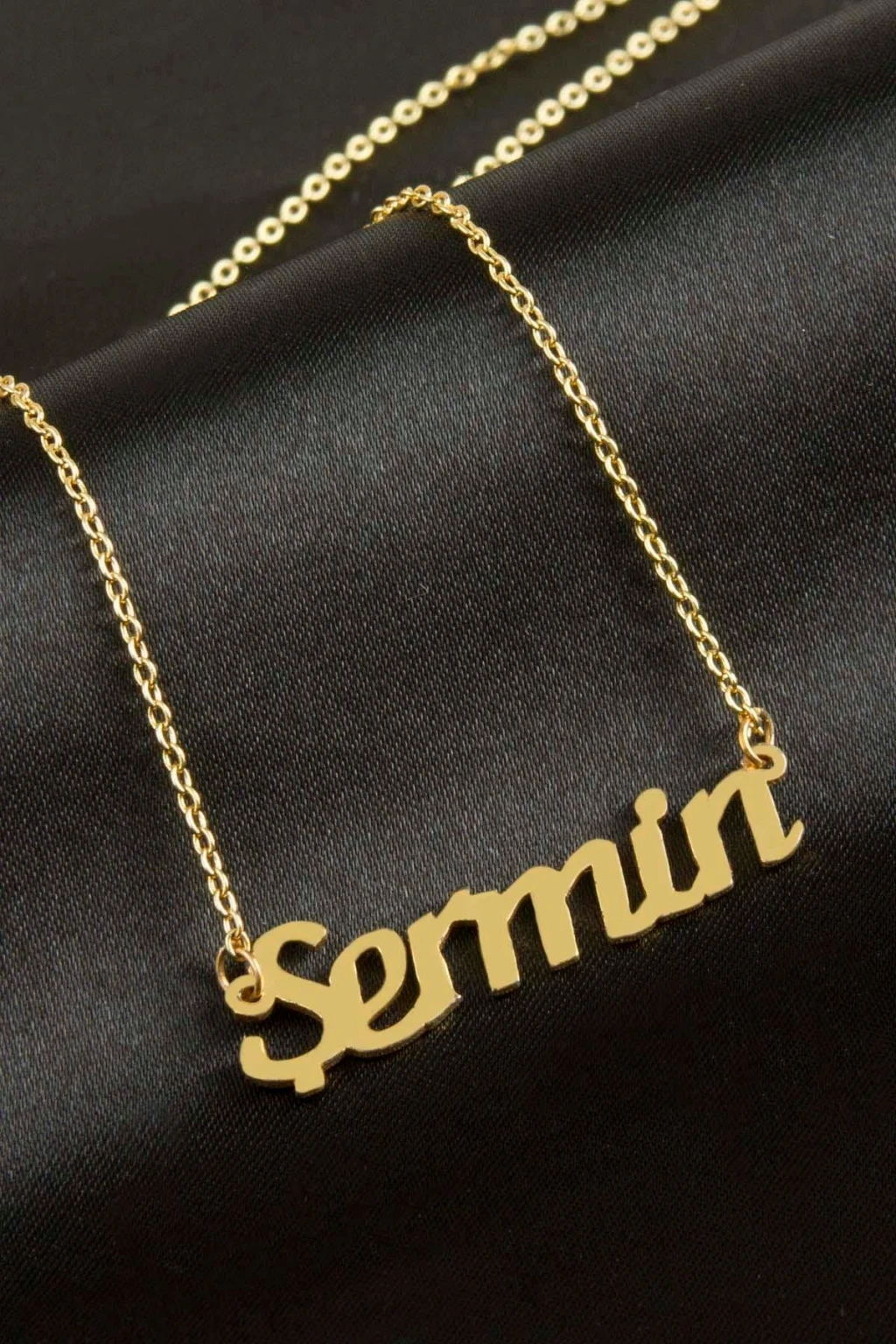 Şermin isimli kolye. İsimli kolye pirinç madeninden ve altın kaplamalıdır. Kişiye özel üretilmektedir.Yazdırmak istediğiniz ismi bize mesaj olarak iletmeniz gerekmektedir. Kullanıma bağlı olarak uzun süre kullanıma uygundur. Ürün malzemesi 1.sınıf kalitededir. Ürün ve zinciri sarı renktedir. Ürün zincir boyu 45 cm ve ürün üzerindeki isimler yaklaşık 3 cmdir. İsim boyları ürün ismine göre degişiklik göstermektedir.