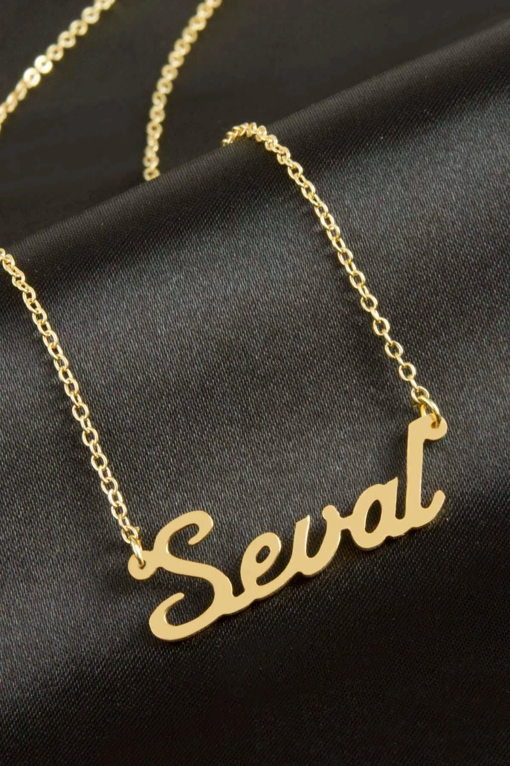 Seval isimli kolye. İsimli kolye pirinç madeninden ve altın kaplamalıdır. Kişiye özel üretilmektedir.Yazdırmak istediğiniz ismi bize mesaj olarak iletmeniz gerekmektedir. Kullanıma bağlı olarak uzun süre kullanıma uygundur. Ürün malzemesi 1.sınıf kalitededir. Ürün ve zinciri sarı renktedir. Ürün zincir boyu 45 cm ve ürün üzerindeki isimler yaklaşık 3 cmdir. İsim boyları ürün ismine göre degişiklik göstermektedir.