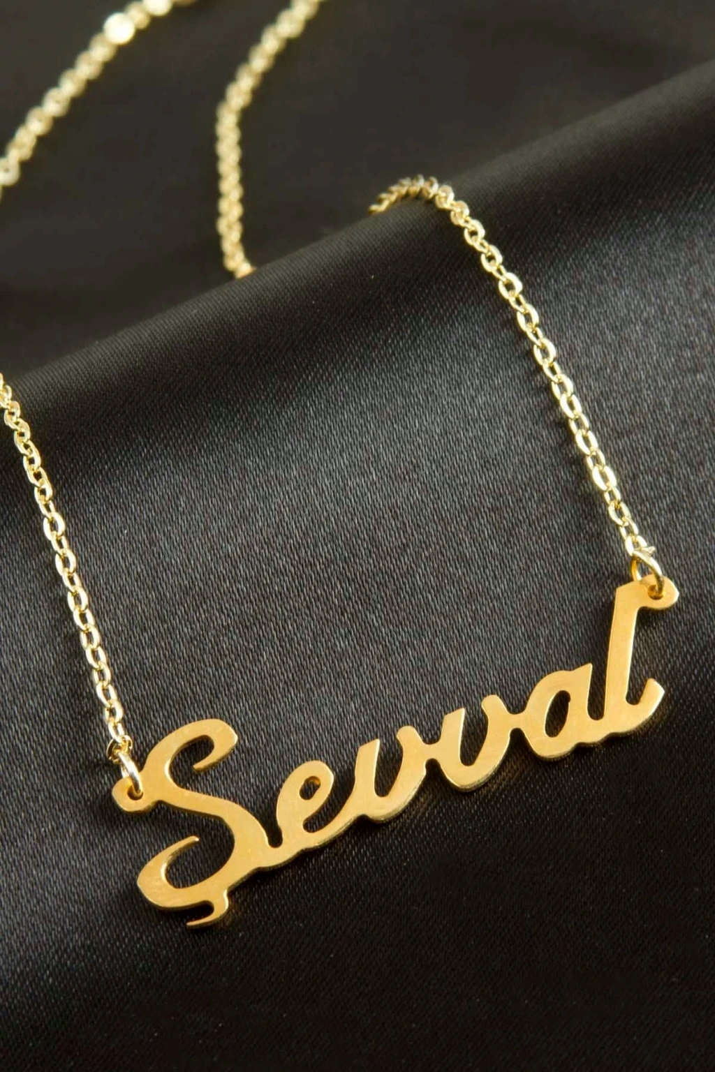 Şevval isimli kolye. İsimli kolye pirinç madeninden ve altın kaplamalıdır. Kişiye özel üretilmektedir.Yazdırmak istediğiniz ismi bize mesaj olarak iletmeniz gerekmektedir. Kullanıma bağlı olarak uzun süre kullanıma uygundur. Ürün malzemesi 1.sınıf kalitededir. Ürün ve zinciri sarı renktedir. Ürün zincir boyu 45 cm ve ürün üzerindeki isimler yaklaşık 3 cmdir. İsim boyları ürün ismine göre degişiklik göstermektedir.