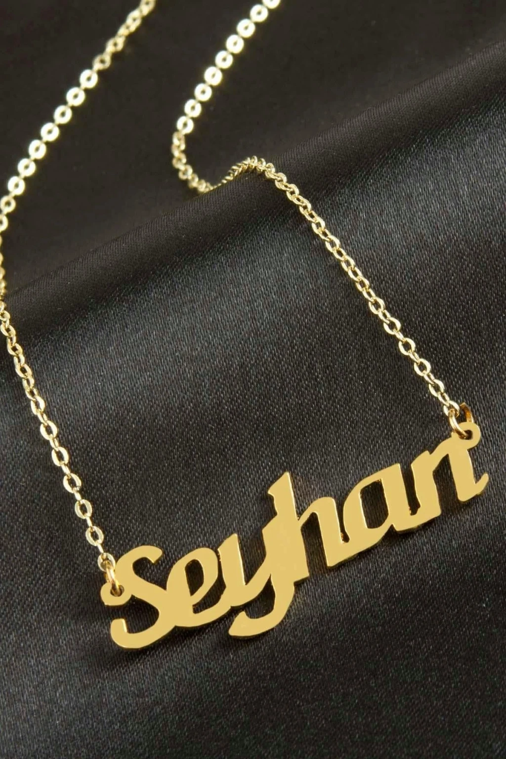 Seyhan isimli kolye. İsimli kolye pirinç madeninden ve altın kaplamalıdır. Kişiye özel üretilmektedir.Yazdırmak istediğiniz ismi bize mesaj olarak iletmeniz gerekmektedir. Kullanıma bağlı olarak uzun süre kullanıma uygundur. Ürün malzemesi 1.sınıf kalitededir. Ürün ve zinciri sarı renktedir. Ürün zincir boyu 45 cm ve ürün üzerindeki isimler yaklaşık 3 cmdir. İsim boyları ürün ismine göre degişiklik göstermektedir.