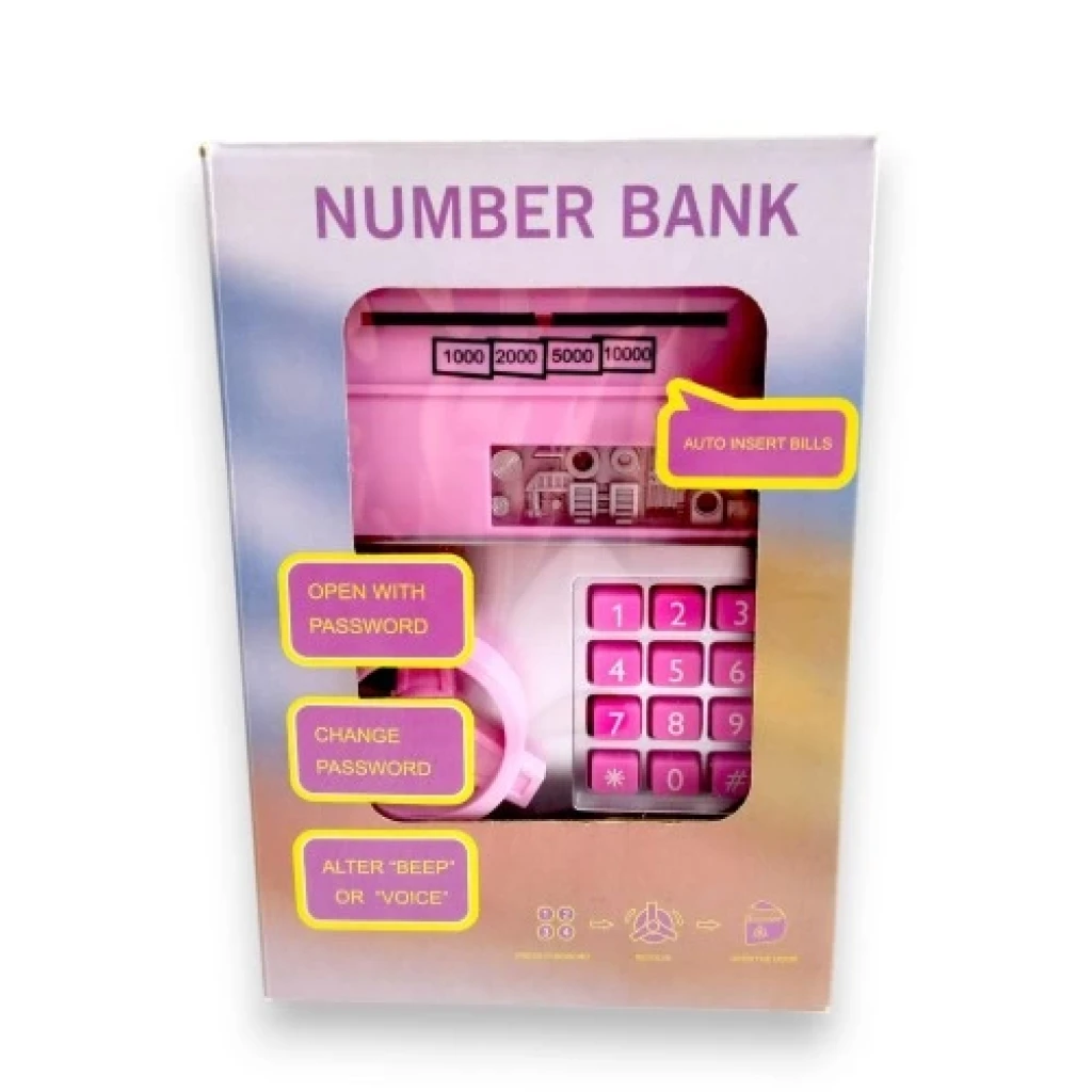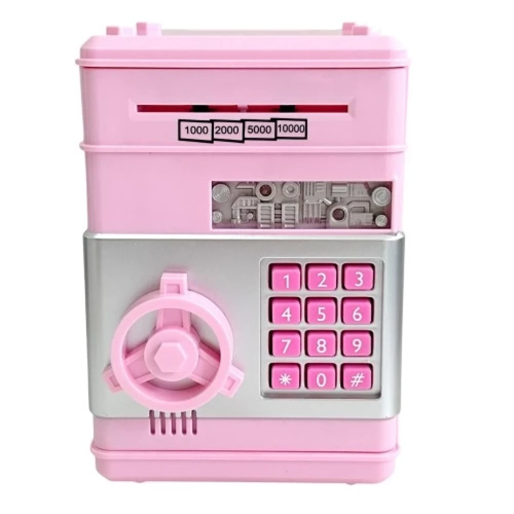 Atm tarzı para yükleme mekanizmasıyla kağıt paralarınızı kendi içine kendisi çeker, üst kısmından da madeni paralar atılabilir. Şifreli güvenlik sistemiyle kapağı ancak doğru şifre girildiğinde açılan ürün içine para atıldığında, şifre girildiğinde ve kapağı açıldığında sesli ve ışıklı uyarıda bulunur. Şifreli atm kasa kumbaranın şifresi 0000 (dört adet sıfır) dır. Şifreli kasa tasarımına sahiptir.4 haneli şifresi istendiğinde değiştirilebilir. Işıklı ve sesli uyarı işaretleri bulunur. Banknot ve bozuk para ile kullanılabilir. Kağıt parayı otomatik olarak içine çeker. Geniş hazneye sahiptir.Abs materyalden imal edilmiştir. 3 adet aa kalem pille çalışır (piller pakete dahil değildir). Ürün ölçüleri: Ebat: 12.5 cm x 13 cm x 20 cm Ağırlık: 590 gr Pembe gönderilecektir.