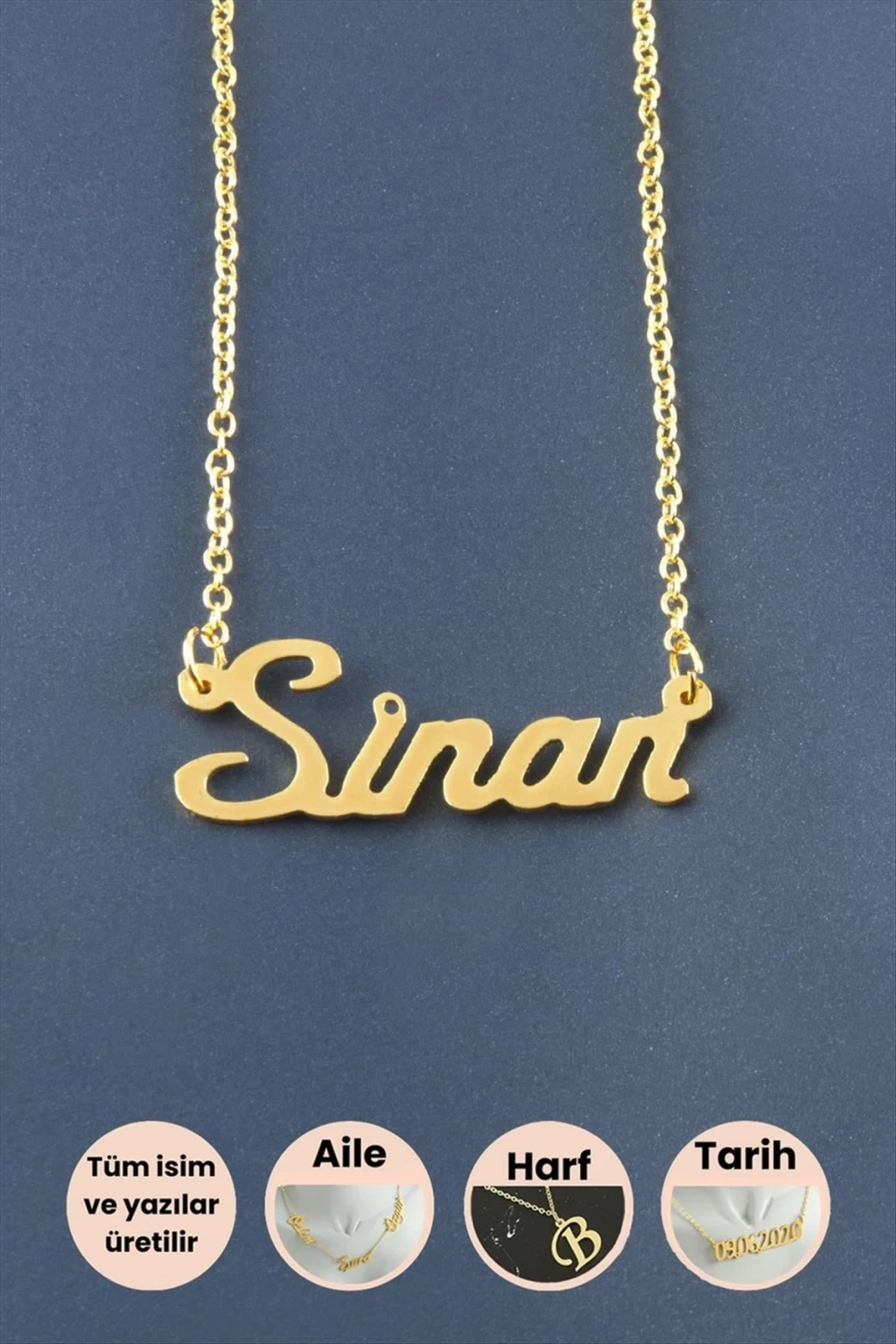 Sinan İsimli Kolye; İsimli kolye pirinç madeninden ve altın kaplamalıdır. Kişiye özel üretilmektedir. Yazdırmak istediğiniz ismi bize mesaj olarak iletmeniz gerekmektedir. Kullanıma bağlı olarak uzun süre kullanıma uygundur. Ürün malzemesi 1.sınıf kalitededir. Ürün ve zinciri sarı renktedir. Ürün zincir boyu 45 cm ve ürün üzerindeki isimler yaklaşık 3 cmdir. İsim boyları ürün ismine göre degişiklik göstermektedir.