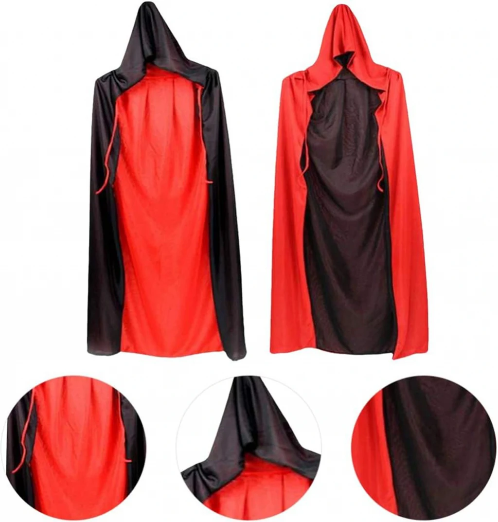 SİYAH KIRMIZI ÇİFT TARAFLI KAPİŞONLU PELERİNÜrün ÖzellikleriMalzeme: Yumuşak ve dayanıklı kumaştan üretilmiştir.Renk: Bir tarafı siyah, diğer tarafı kırmızı. Çift taraflı kullanım imkanı sağlar.Boyut: 140 cm uzunluğunda, yetişkin bireylere uygun.Kapişon: Geniş ve rahat kesimi ile şık bir görünüm sunar.Kullanım Alanı: Cadılar Bayramı, tiyatro gösterileri, temalı partiler ve kostüm etkinlikleri için ideal.Tasarım: Hafif yapısıyla rahat taşınabilir, bağcık detaylı kapişon.Paket İçeriği1 Adet Siyah Kırmızı Çift Taraflı Kapişonlu Pelerin (140 cm)