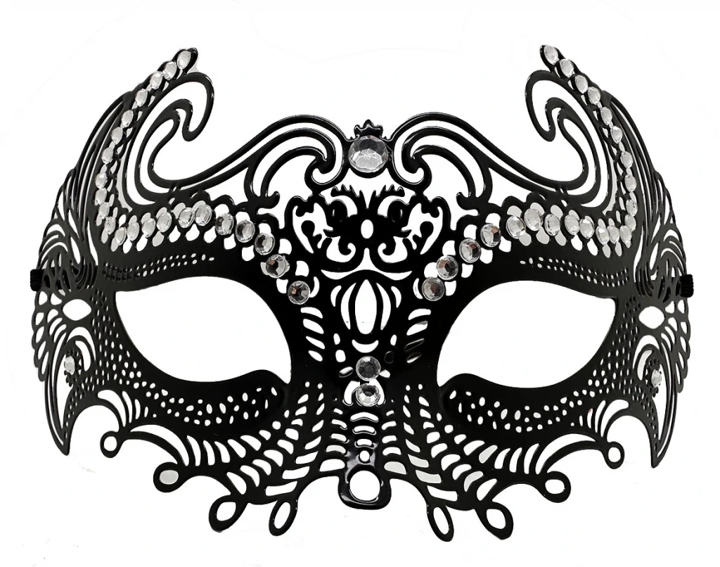 Siyah Lazer Kesim Kristal Taşlı Metal Venedik Maskesi