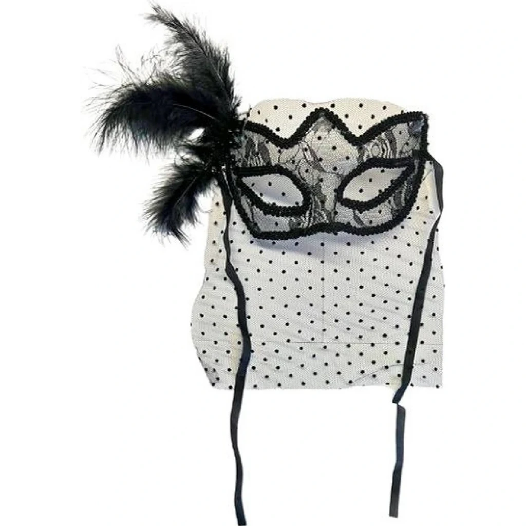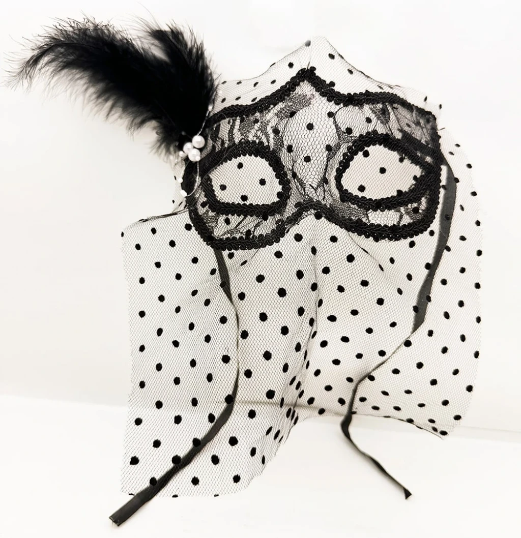 Siyah Puantiyeli Duvaklı İncili Parti Maskesi