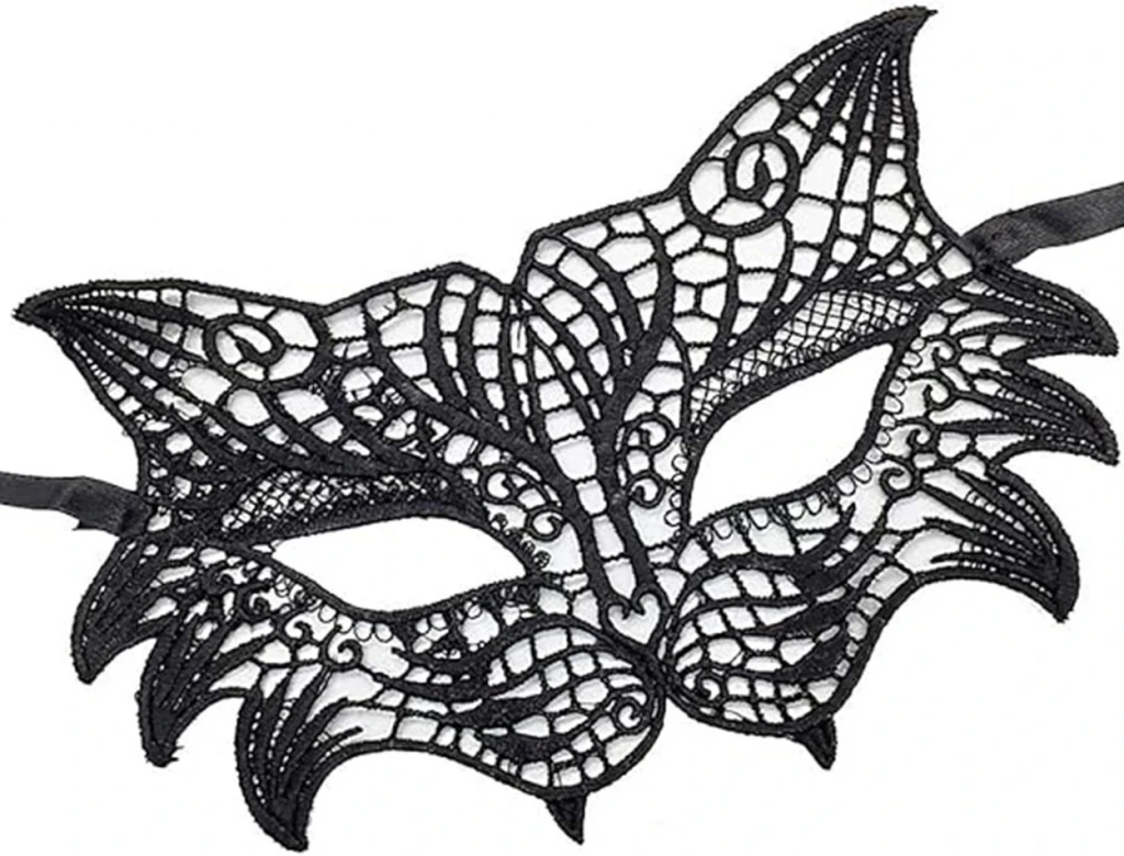 Siyah Renk Kedi Model Dantel İşleme Parti Maskesi