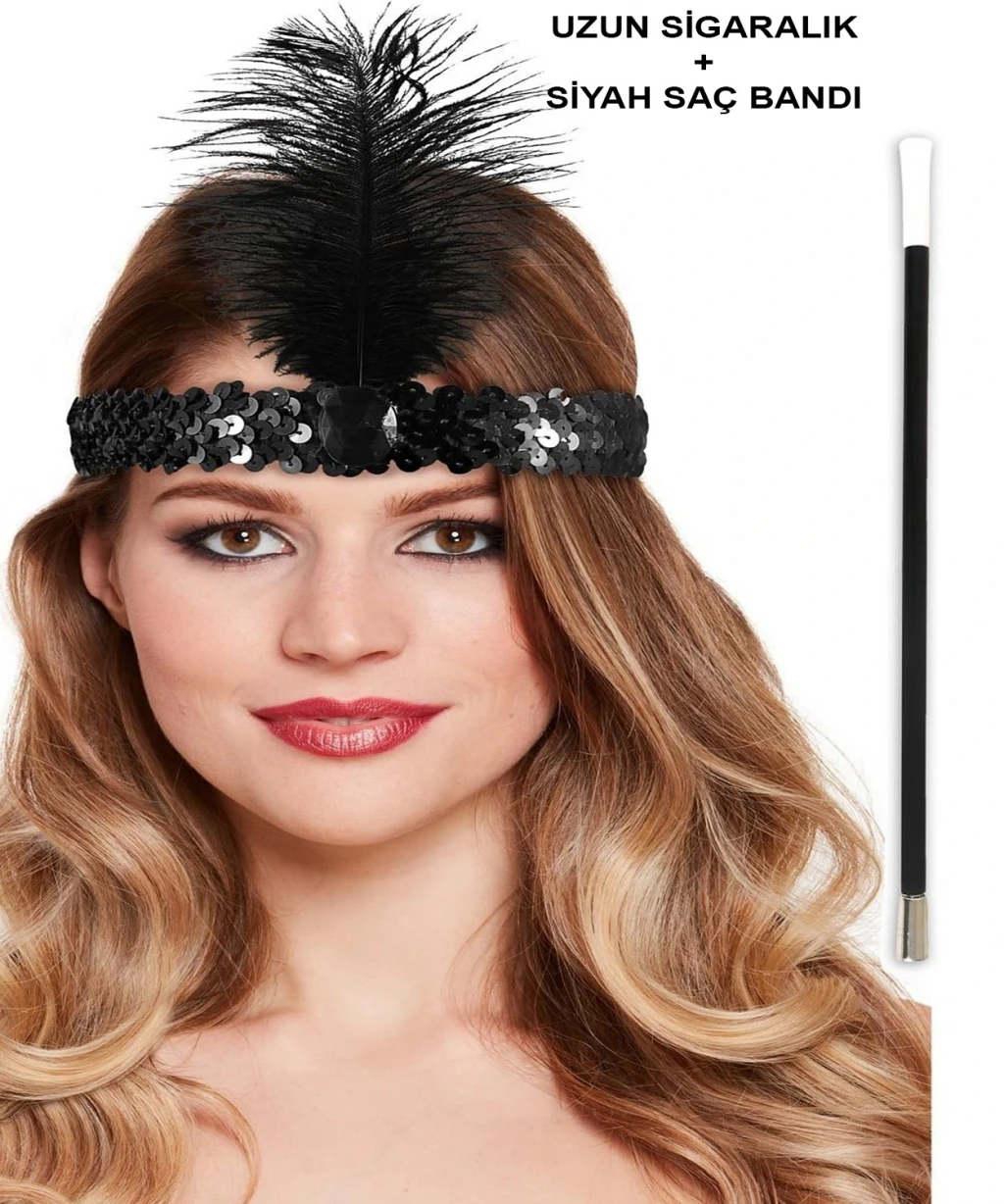Siyah Retro Charliston Saç Bandı & Sigaralık