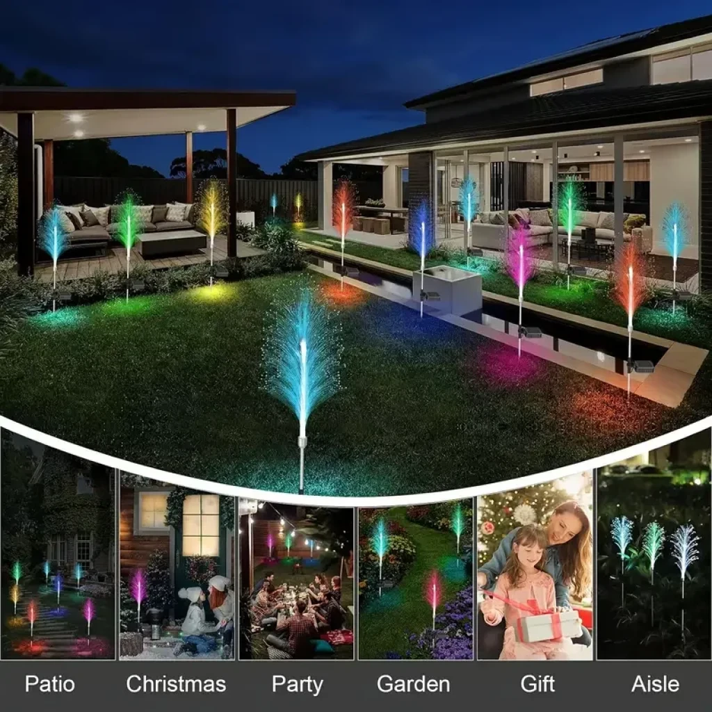 Solar Bahçe Işıkları Açık Hava Dekoratif, 7 Renk Değiştiren Fiber Optik Işıklar, 2 Paket Güneş Enerjili Işıklar