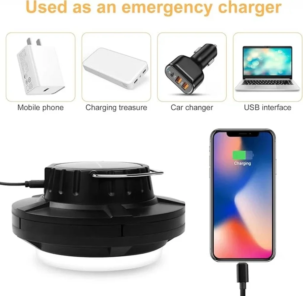 <strong>Solar Panelli Telefon Şarj Özellikli Çok Fonksiyonlu Kamp Lambası Aydınlatma</strong><br /><br />Kamp Fener Şarj Edilebilir, 5 Işık Modu, 800 Lümen Ultra Parlak Çadır Işığı, Dönebilen 5 Yapraklı Kamp Lambası, Yürüyüş, Kamp, Balık Tutma, Avcılık, Elektrik Kesmeleri için 4000mAh 10+ Saat Pil Ömrü<br /><br />Solar Panelli Çok Fonksiyonlu Kamp Lambası ve Telefon Şarj Cihazı**<br /><br />Bu çok fonksiyonlu kamp lambası, açı