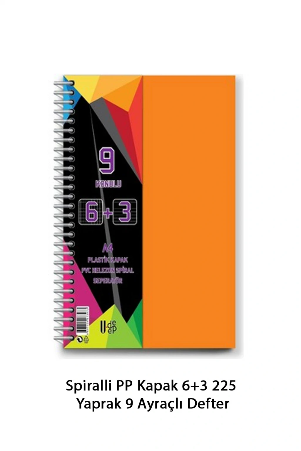 Spiralli PP Kapak 6+3 225 Yaprak 9 Ayraçlı Defter