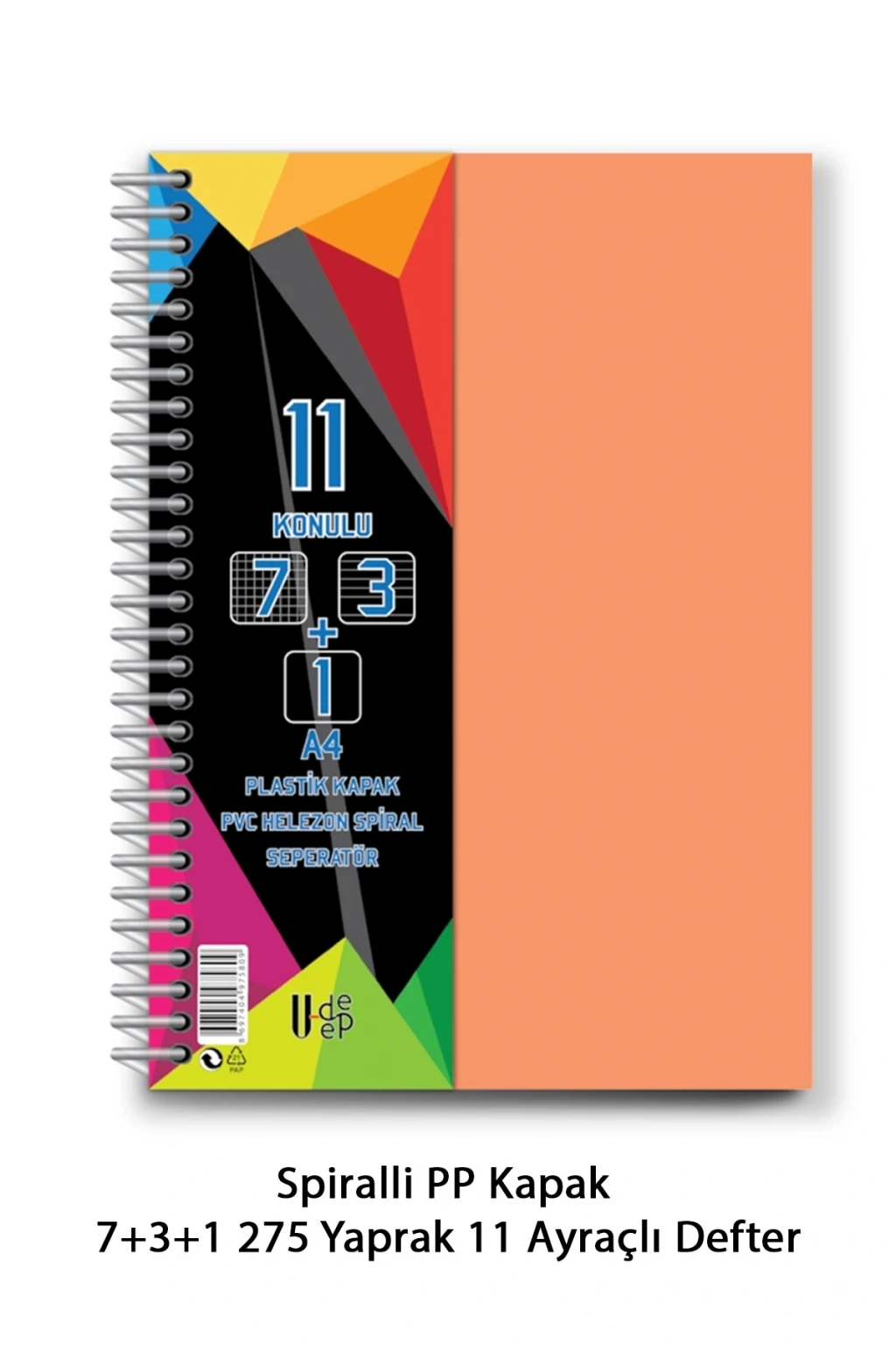 Spiralli PP Kapak 7+3+1 275 Yaprak 11 Ayraçlı Defter