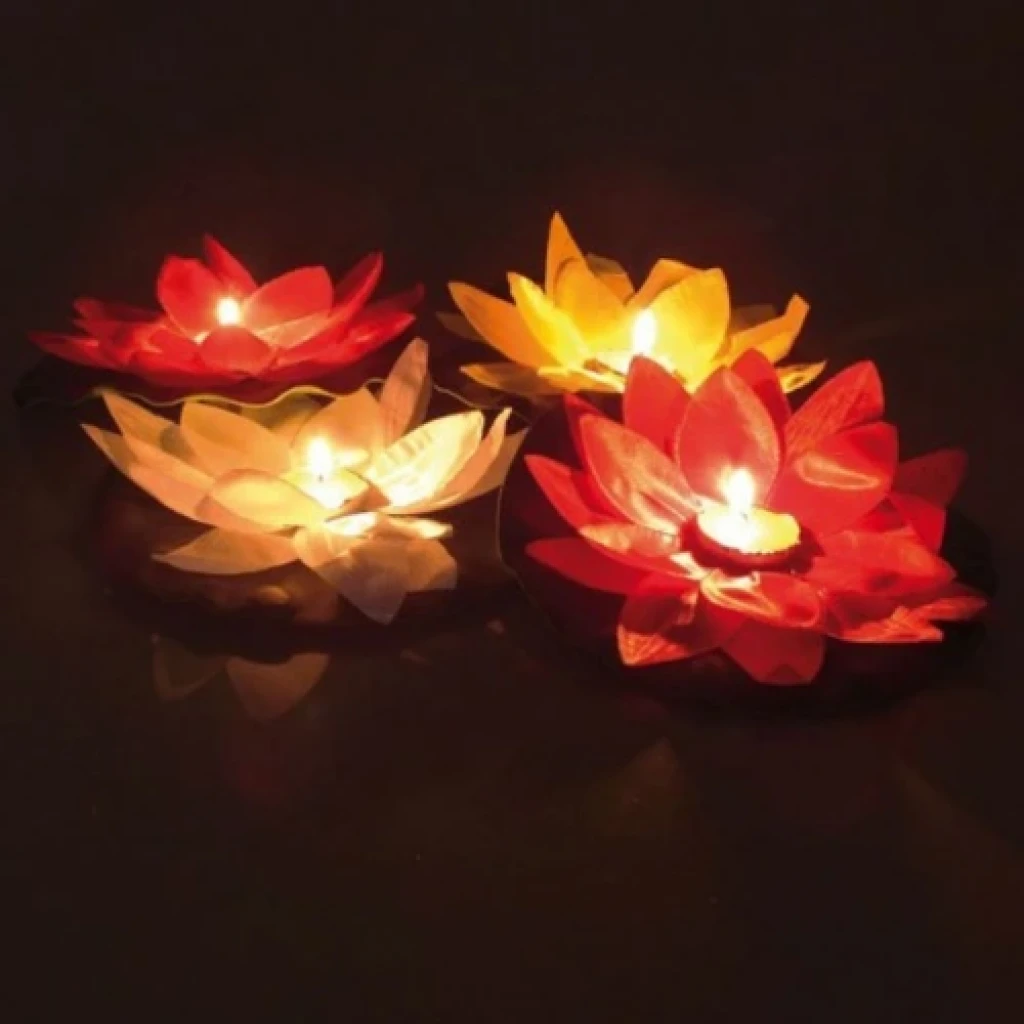 Su FeneriNİLÜFER SU ÇİÇEĞİ FENERHavuz başı, Festivallerde, düğün, nişan ve benzeri organizasyonların olmasa olmazı Havuz başı nilüfer su feneri Dilek tutun ve suya bırakınGerçek nilüfer çiçeğinden farksız görüntüsü ile isterseniz evinizde dekor amaçlı kullanabilir, isterseniz suda batmama Özelliği sayesinde özel günlerinizde havuz içerisinde, havuz kenarlarında, denizde, küvette kullanabilirsiniz. Ürün Özellikleri: Alt kısmındaki yaprak şeklindeki öze kumaş malzeme sayesinde suda batmaz. Su üzerinde durur.Nilüferin ortasında 1 adet T-light mum bulunur.12 alt yaprak, 6 üst yaprak olmak üzere 18 yapraktan oluşur.Kırmızı , sarı , mor , pembe , beyaz , fuşya renkleri mevcuttur.Karışık renklerde gönderilir. Paket İçeriği: 1 adet kumaş malzemeli su feneri1 adet t-light mum