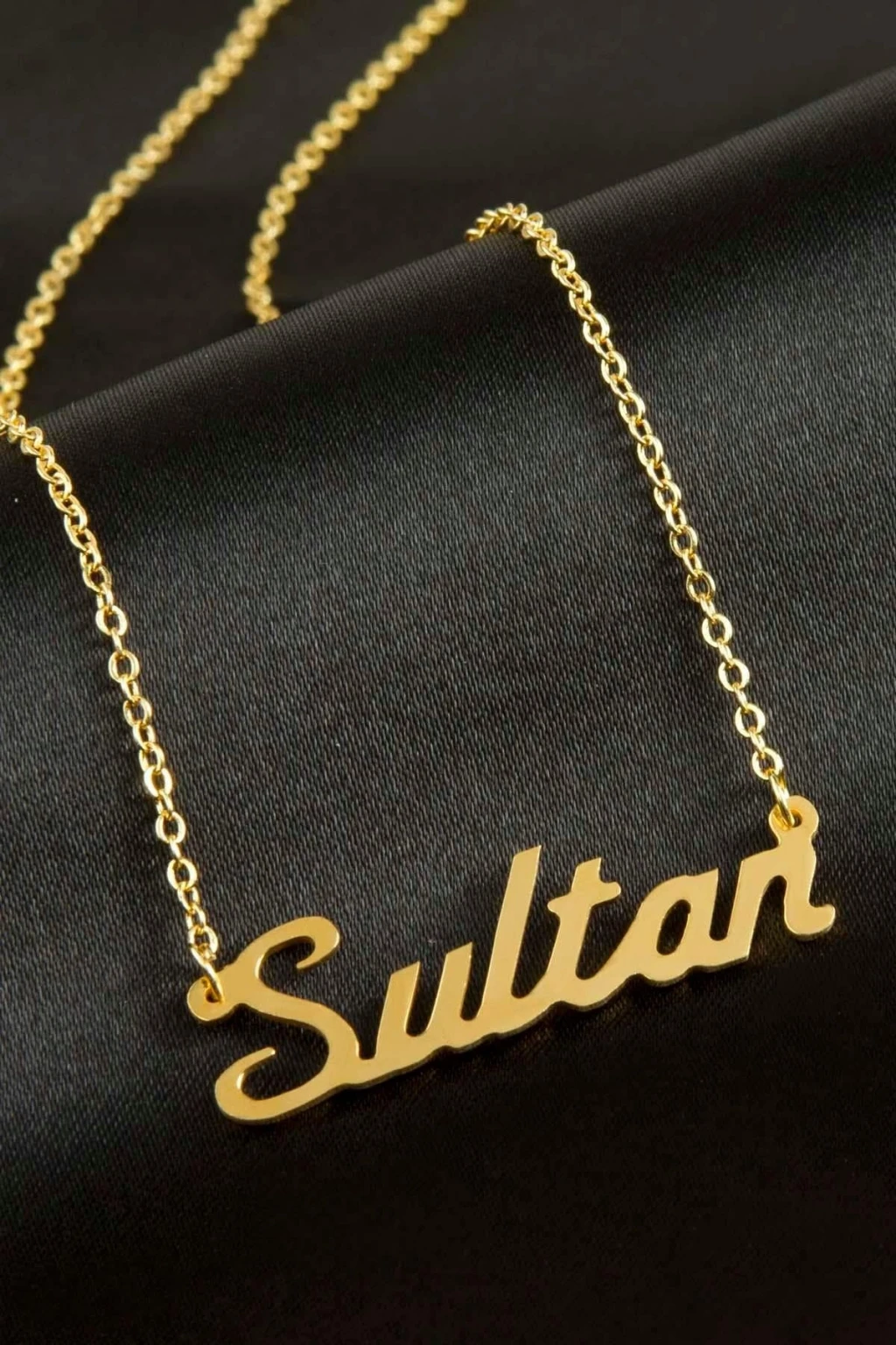 Sultan isimli kolye. İsimli kolye pirinç madeninden ve altın kaplamalıdır. Kişiye özel üretilmektedir.Yazdırmak istediğiniz ismi bize mesaj olarak iletmeniz gerekmektedir. Kullanıma bağlı olarak uzun süre kullanıma uygundur. Ürün malzemesi 1.sınıf kalitededir. Ürün ve zinciri sarı renktedir. Ürün zincir boyu 45 cm ve ürün üzerindeki isimler yaklaşık 3 cmdir. İsim boyları ürün ismine göre degişiklik göstermektedir.