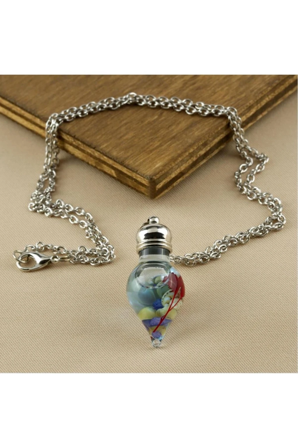 Canlı Kolye;Ürün malzemesi metal, fanus ve zincirdir. Çiçek renkleri asortilidir. Siparişlerinize karışık olarak eklenecektir.