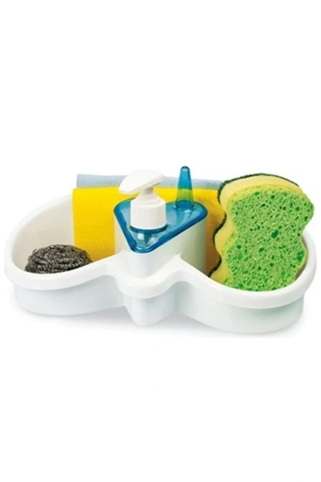 Sünger ve Deterjan Hazneli Lavabo Düzenleyici Sabunluk Organizer
