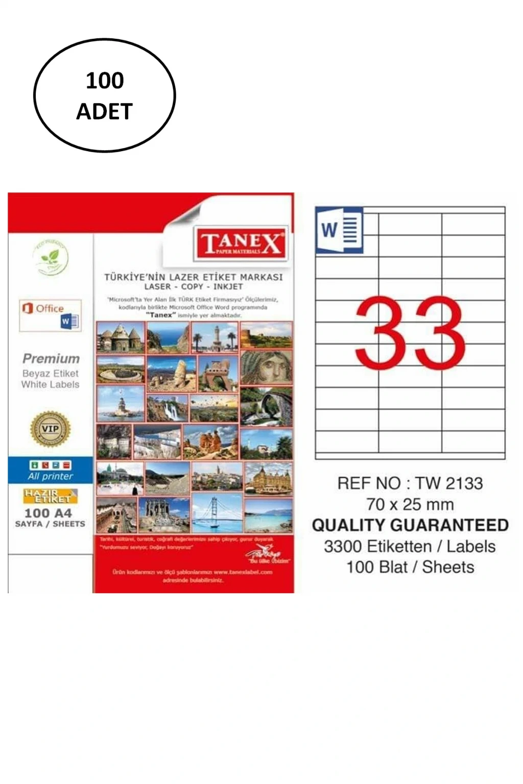 Tanex Lazer Etiket TW-2133 70x25 mm 100 Lü
