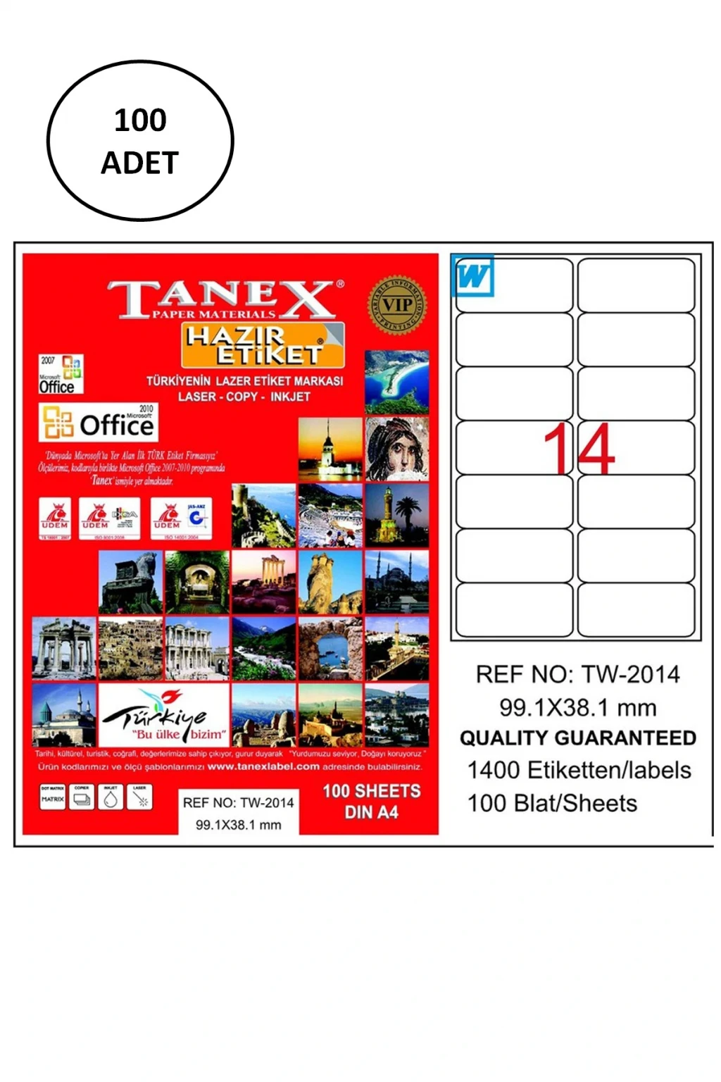 Tanex Tw-2014 Lazer Etiket 99X38 Mm 100 Adet