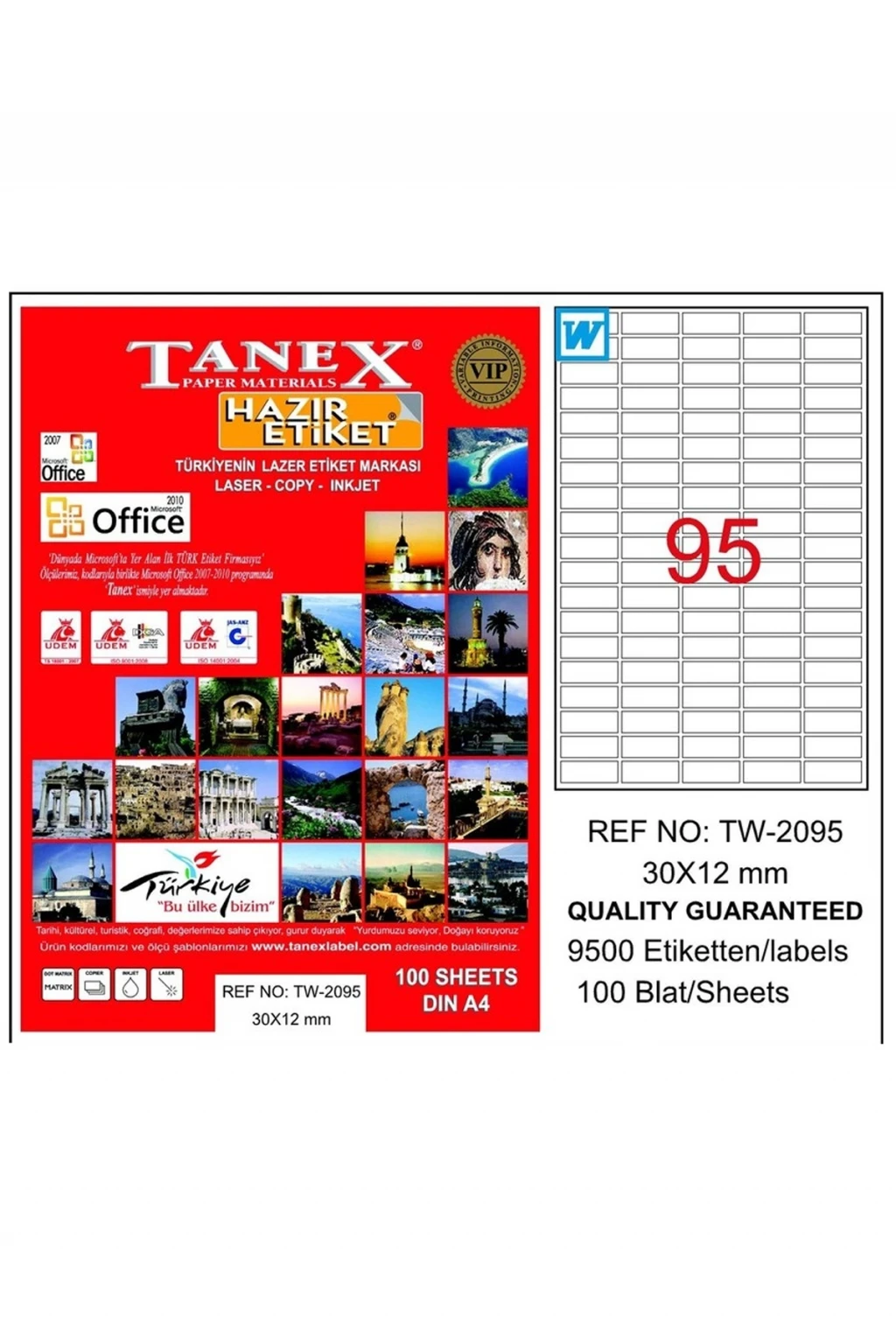 Tanex Tw-2095 30x12 Lazer Etiket 100'lü