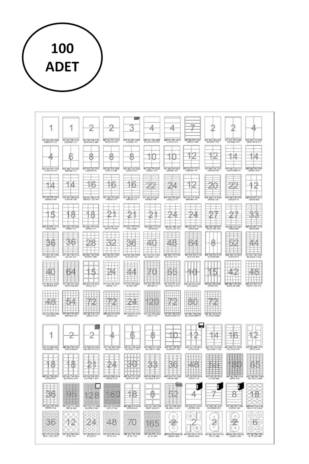 Tanex TW-2100 210x280 mm 100'lü Paket Kuşe Laser Etiket