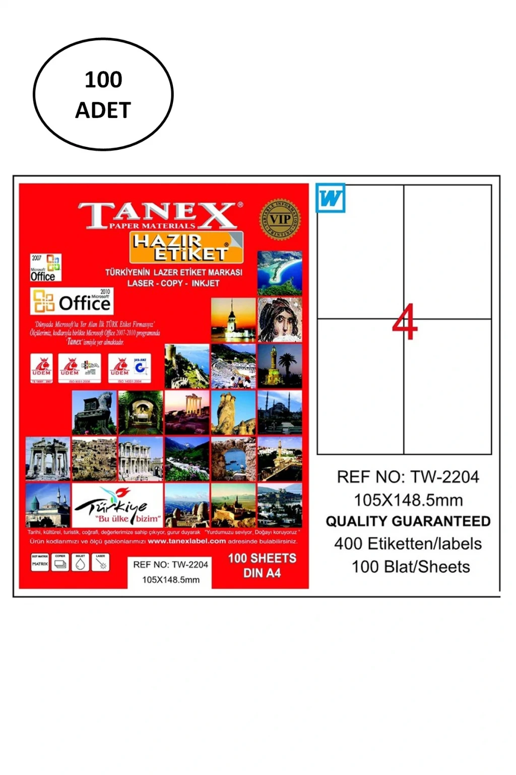 Tanex Tw-2204 105X148,5 Mm Lazer Etiket 100 Adet