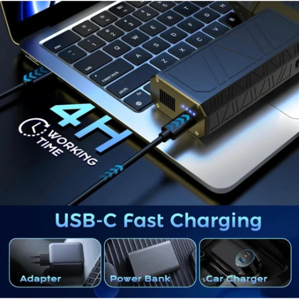 TAŞINABİLİR KOMPAKT JET FANÜrün ÖzellikleriTaşınabilir kompakt jet fan, güçlü performansı ve pratik tasarımıyla hem evde hem de dış mekânda kullanıma uygun çok amaçlı bir üründür. 3 farklı vites ayarı ile 50.000 RPM, 100.000 RPM ve 130.000 RPM hız seçenekleri sunarak evcil hayvan kurutma, bilgisayar ve klavye temizliği ya da otomobil bakımı gibi farklı ihtiyaçlara cevap verir. Type-C şarj girişi sayesinde hızlı şarj edilebilir ve uzun süreli kullanım imkânı sağlar. Kompakt boyutu ve hafif yapısı sayesinde cepte veya çantada kolayca taşınabilir. Güçlü motoru sayesinde kısa sürede etkili hava üflemesi yaparak zamandan tasarruf sağlar.Paket İçeriği1 adet taşınabilir kompakt jet fan