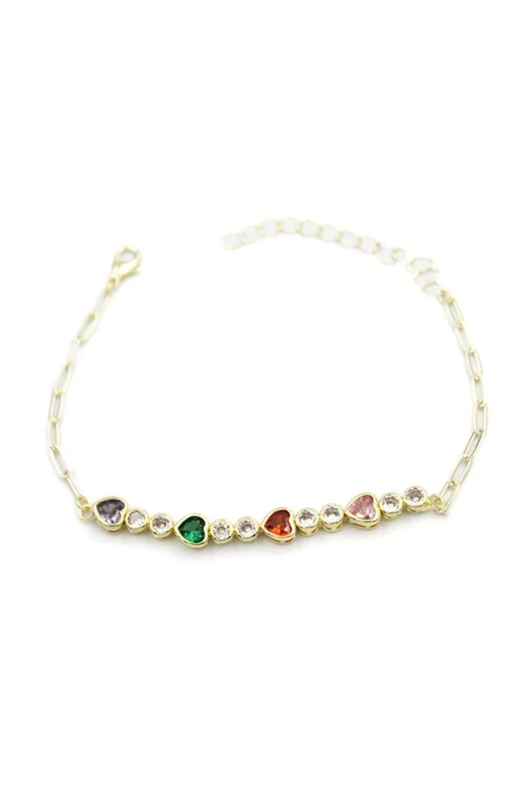 Taşlı Kalp Bileklik - Altın