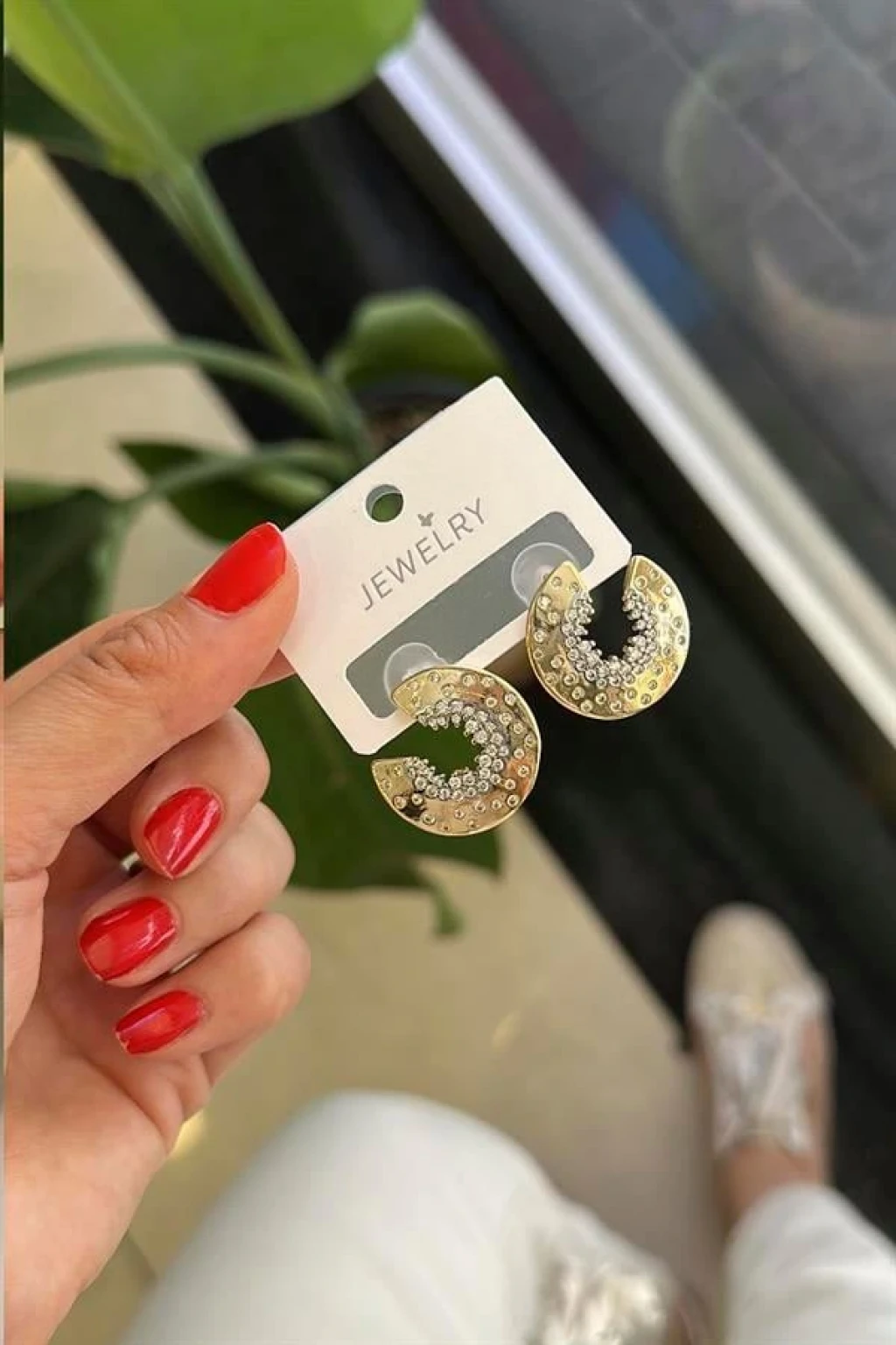 Taşlı Küpe - Altın