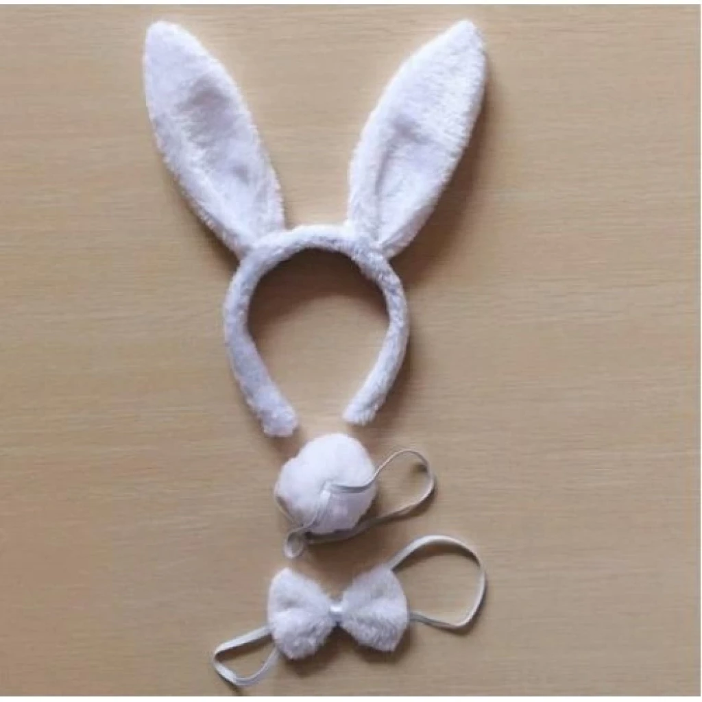 Tavşan Kostüm SetiTaç + Papyon + KuyrukBeyaz RenkYetişkin - Çocuk Uyumludur