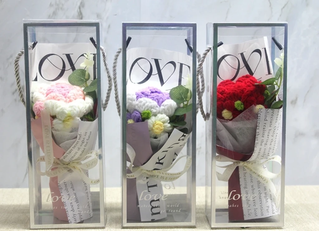 TEKLİ EL ÖRGÜSÜ GÜL BUKETİÜrün ÖzellikleriTekli El Örgüsü Gül Buketi, el emeği ile hazırlanmış dekoratif ve şık bir çiçek tasarımıdır. 24x9 cm boyutundaki ideal ölçüsü sayesinde masa üstü dekorlarında, hediye sunumlarında, özel gün kutlamalarında ve fotoğraf çekimi konseptlerinde zarif bir tamamlayıcı olarak kullanılabilir. Örgü gül detayının yumuşak dokusu ürüne sıcak ve romantik bir görünüm kazandırırken, şeffaf kutulu sunumu ürünü hediye edilmeye hazır özel bir aranjman haline getirir. Kurdele ve dekoratif etiket detayları tasarıma estetik bir hava katarken, el işçiliği sayesinde her bir buket kendine özgü bir karakter taşır. Renk seçimi yapılamaz; görseldeki renklerden biri olarak gönderilir. El yapımı ve dekoratif hediye arayanlar için ideal bir seçimdir.Paket İçeriği1 adet Tekli El Örgüsü Gül Buketi