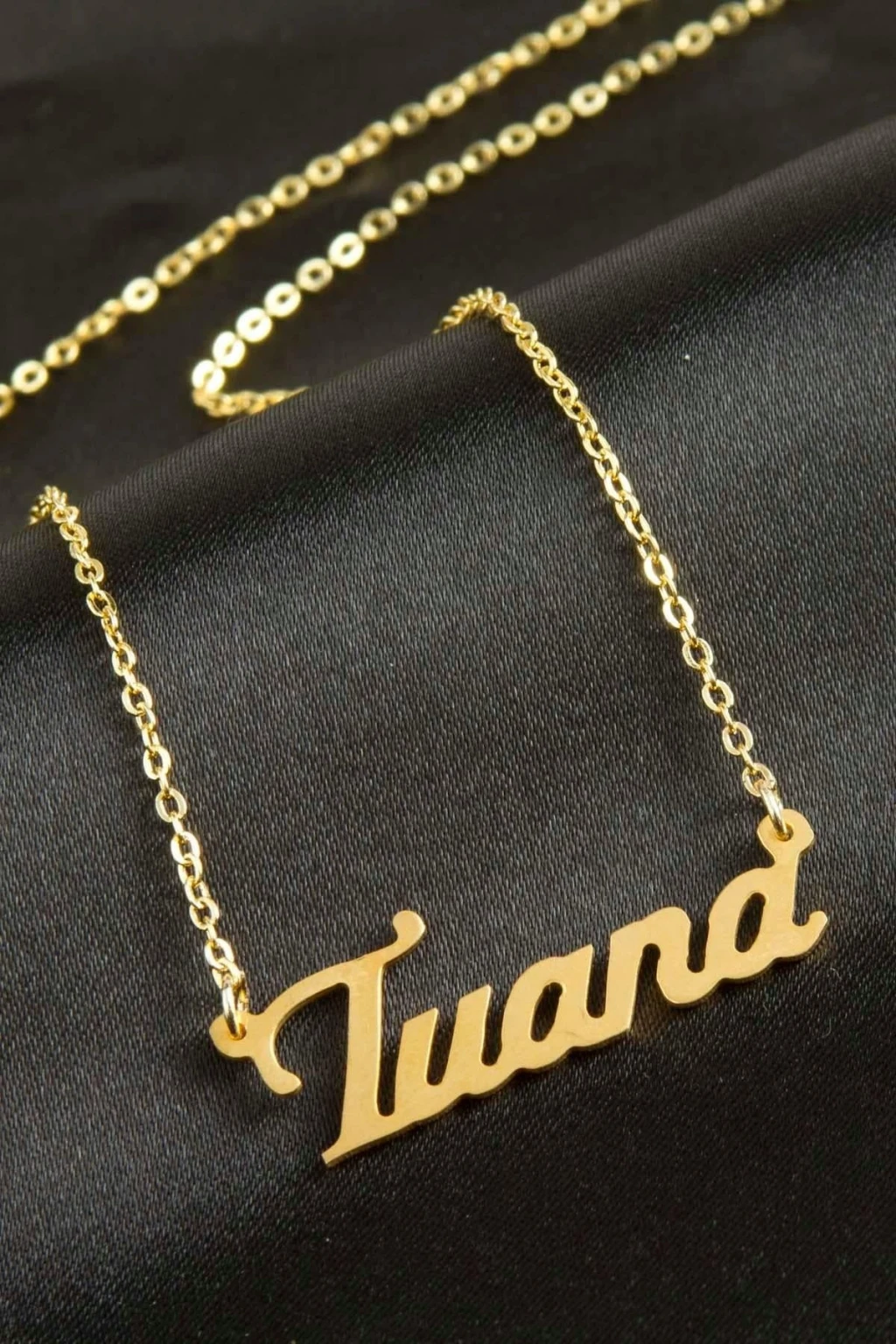 Tuana isimli kolye. İsimli kolye pirinç madeninden ve altın kaplamalıdır. Kişiye özel üretilmektedir.Yazdırmak istediğiniz ismi bize mesaj olarak iletmeniz gerekmektedir. Kullanıma bağlı olarak uzun süre kullanıma uygundur. Ürün malzemesi 1.sınıf kalitededir. Ürün ve zinciri sarı renktedir. Ürün zincir boyu 45 cm ve ürün üzerindeki isimler yaklaşık 3 cmdir. İsim boyları ürün ismine göre degişiklik göstermektedir.