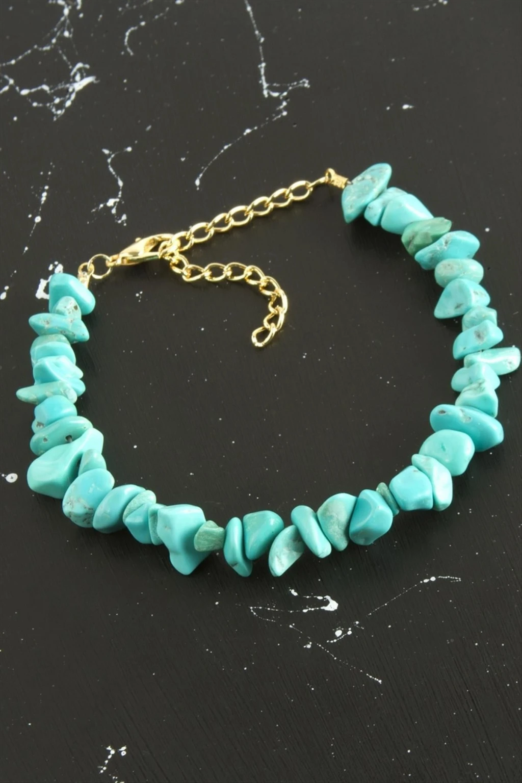 Bileklik; Ürün malzemesi turkuaz doğaltaşından imal edilmiştir. Ürün uzunluğu 19 cmdir. Kartıyla beraber gönderilir.
