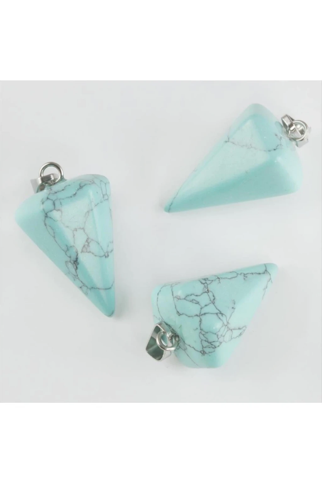 Ürün kolye ucu olarak kullanılmaktadır. Doğaltaş turkuazdır. Şekil olarak üçgen biçimindedir. Üzerinde ip veya zincir geçirmek için metal kısımı bulunmaktadır. Uzunluğu yaklaşık olarak 2 cmdir. Ürün zincirsiz olarak gönderilecektir.